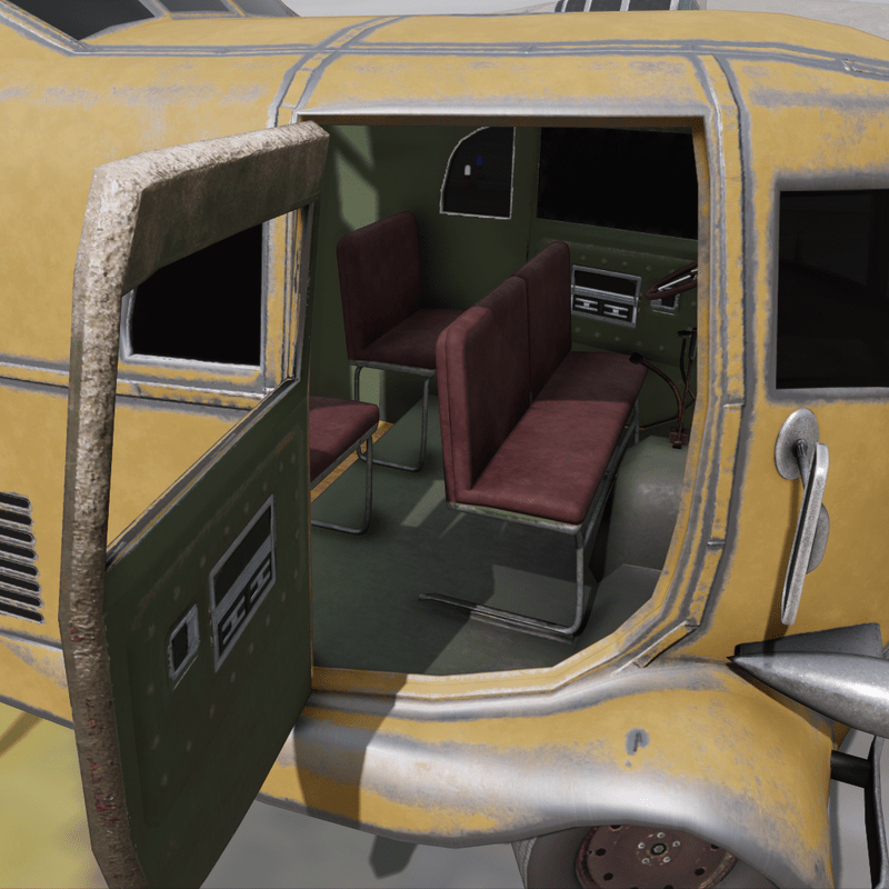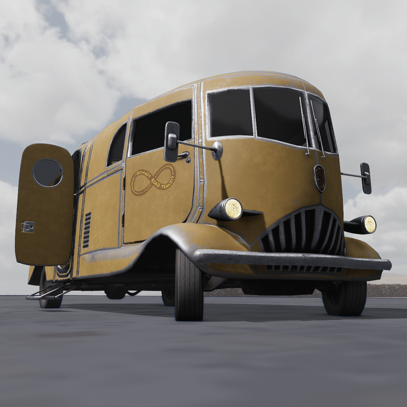 The 1937 Virtual Traveler VT2000T. Caravan with a 4 seat front cabin and an open rear cabin. The rear cabins come in different configurations. The 'T' in this model means Transport. Workable doors (unscripted). Special versions available upon request. Highly detailed version with 133.7 MB texture load and 76K Tris. Not drivable but makes a great prop.