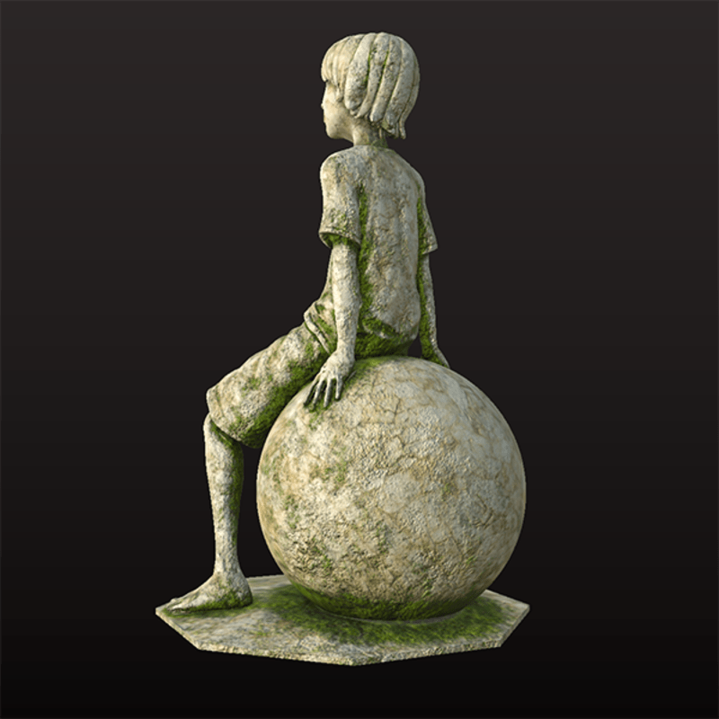 Moss covered version of a marble statue of a child sitting on a ball thinking. A non Moss covered version is available here >> https://store.sansar.com/listings/3c51be69-5a6f-4a08-93d6-0e8612554fe0/little-thinker-statue---marble