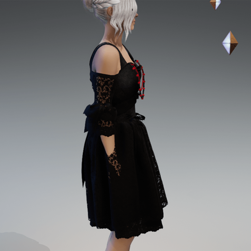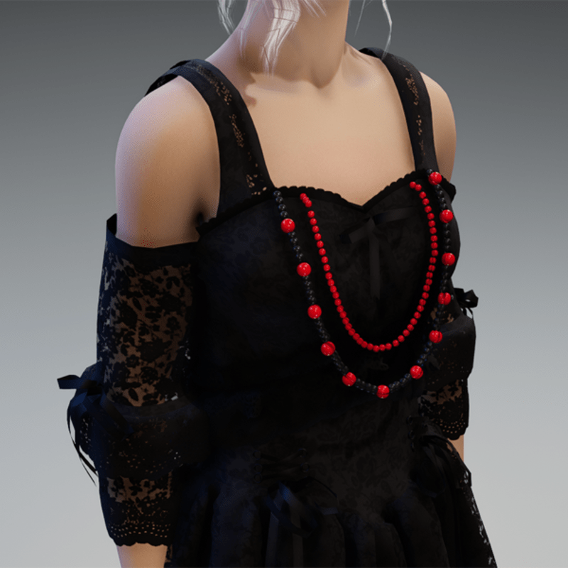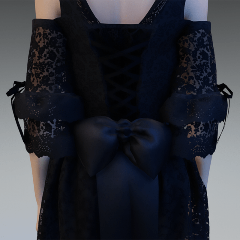 This cute gothic rococo dress comes with a pearl-chain-application on the front. some tiny bows on the front and the sleeves as well as a big bow on the back and some lacing. Enjoy! <3