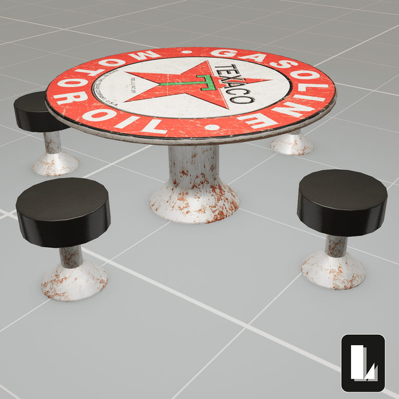 Low poly set. 1 table 4 stools (with sit points)