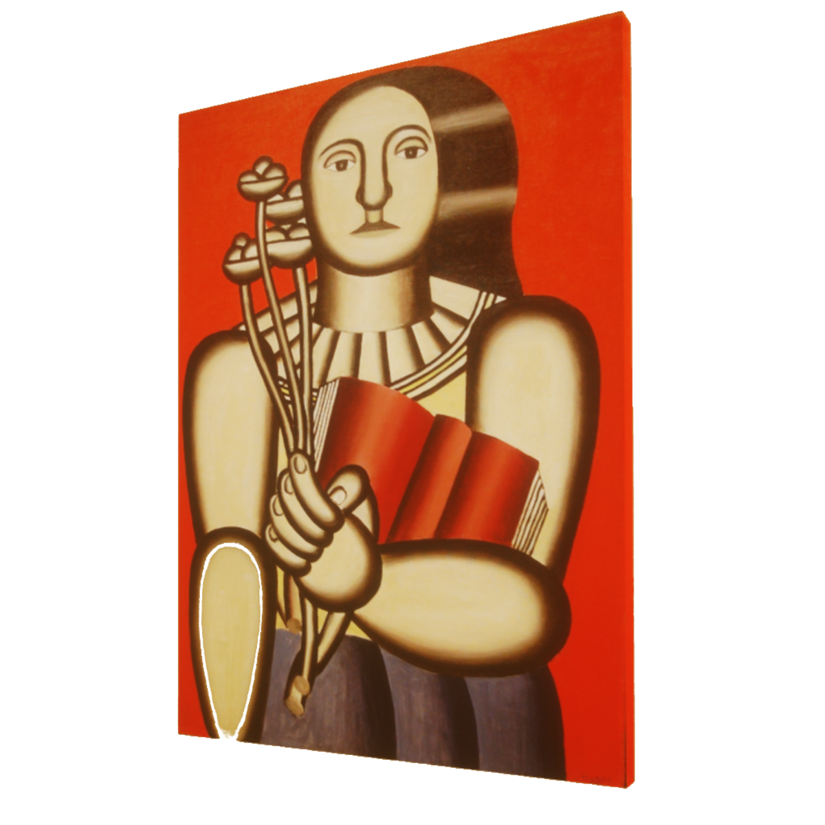 An artwork by Fernand Léger called Woman with a Book 1923. Scale: Real-world, Texture: 1024x1024, Quads: 6, Material: Standard with Albedo, Collision Mesh: No, Audio: No, Physics: No, Source: Voogu LLC