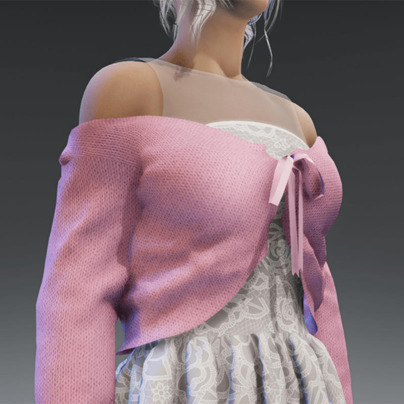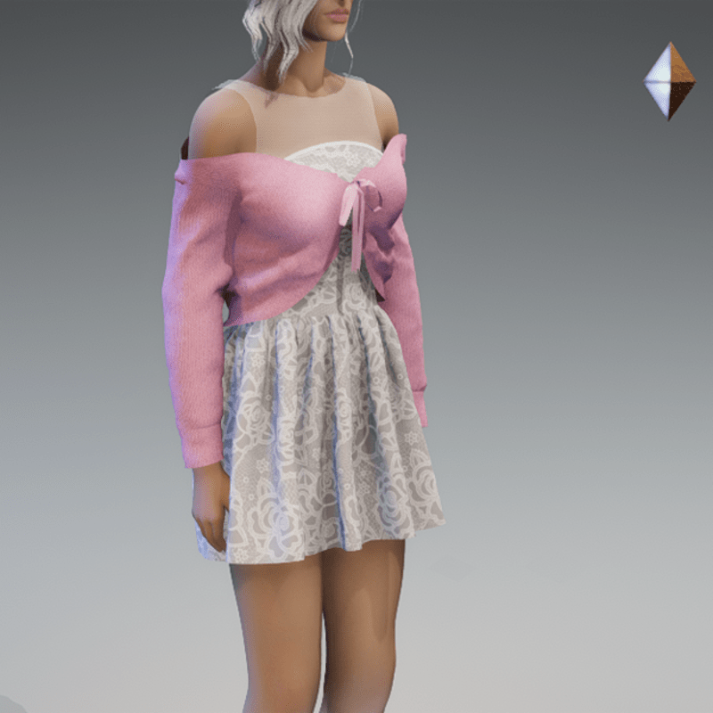 This dress comes in a lace fabric and a short jacket over it which has a bow on the front. Enjoy! <3