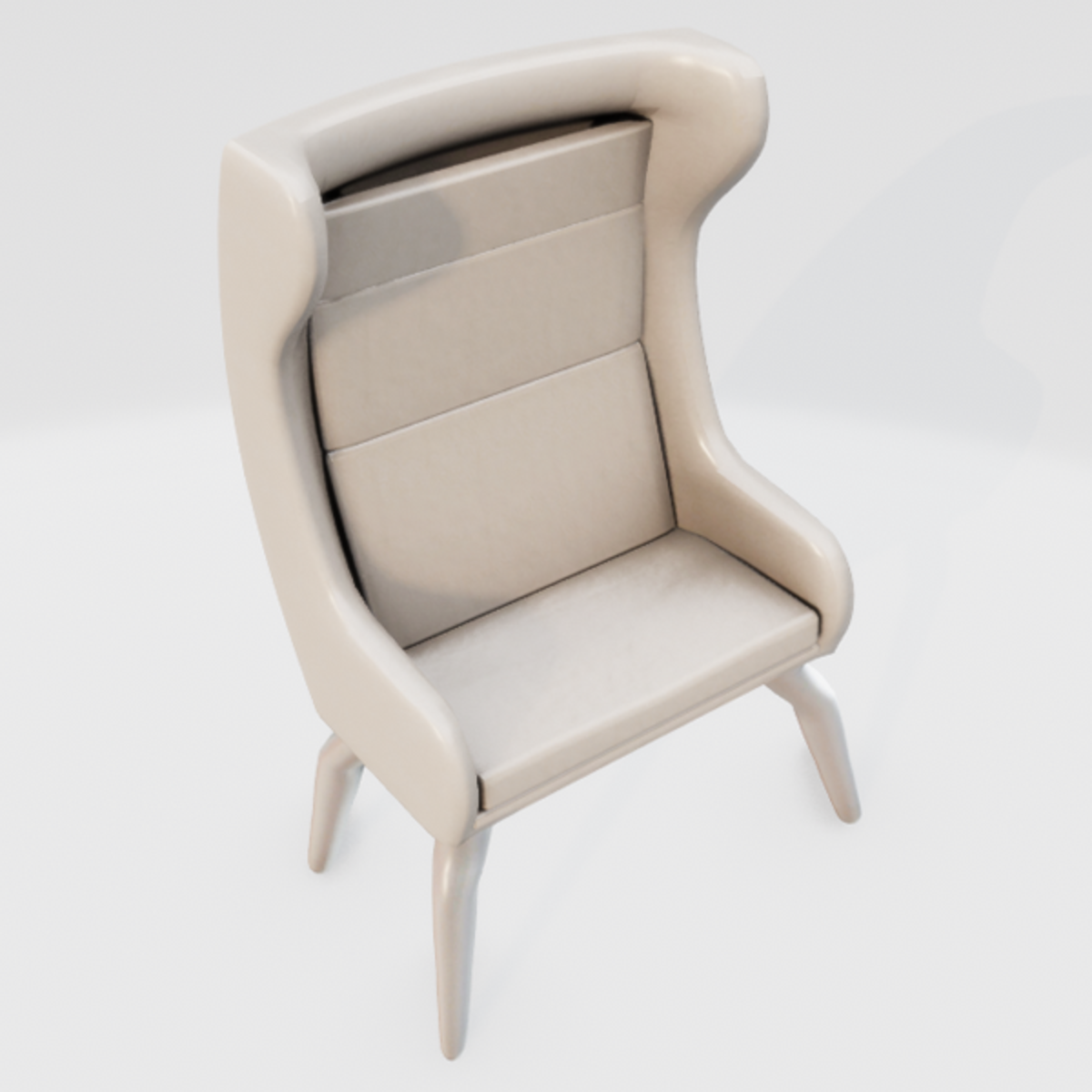 Modern Wingback Chair White IMPORTANT NOTICE: This product photo was taken directly in Sansar with Bright Clouds Skybox windlight settings. Using other windlights may alter the product's color as the leather material reflexes the light source's color.