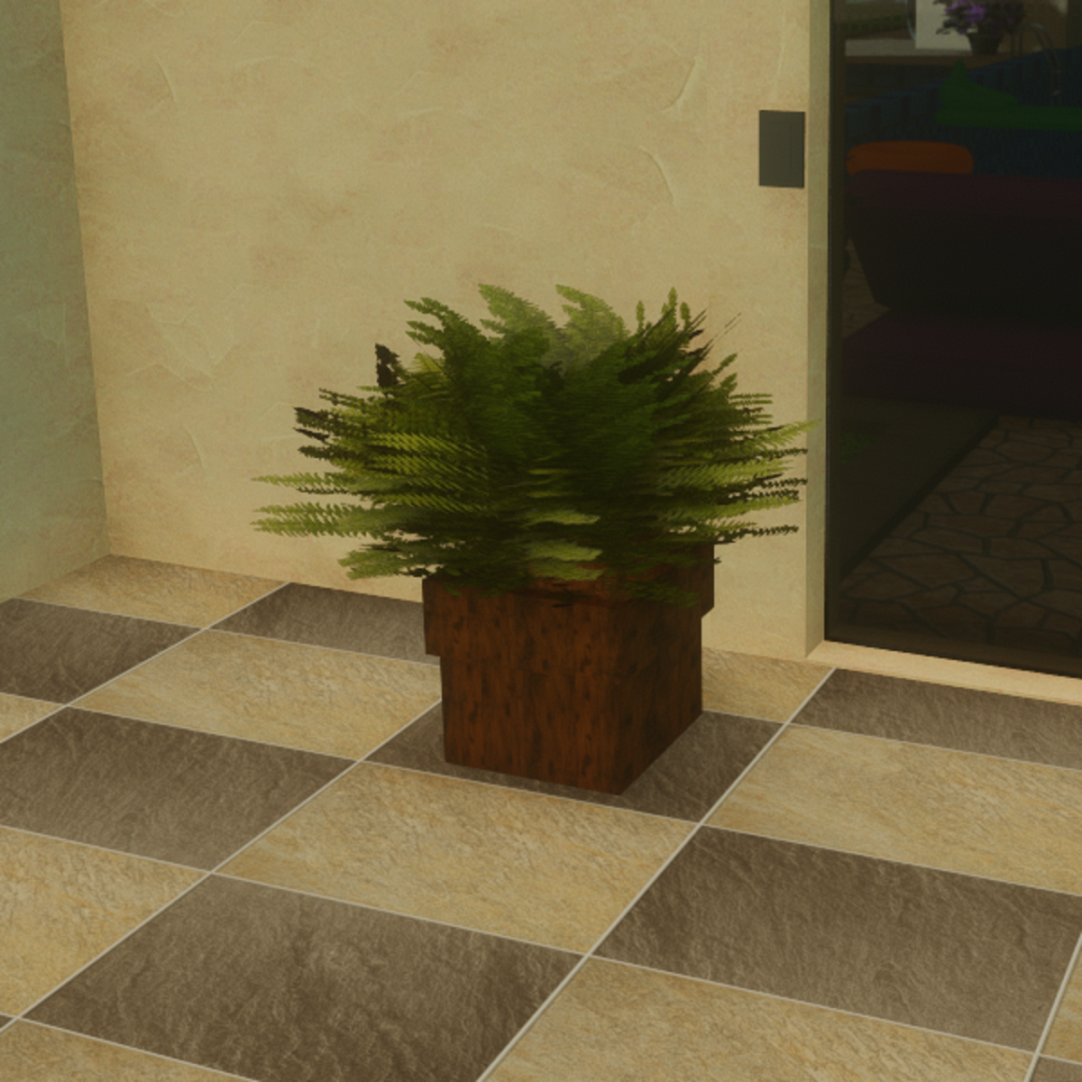 Boston Fern in Plant box. * Can be seen in world at The Maple Villa https://atlas.sansar.com/experiences/robin-1731/maple-villa
