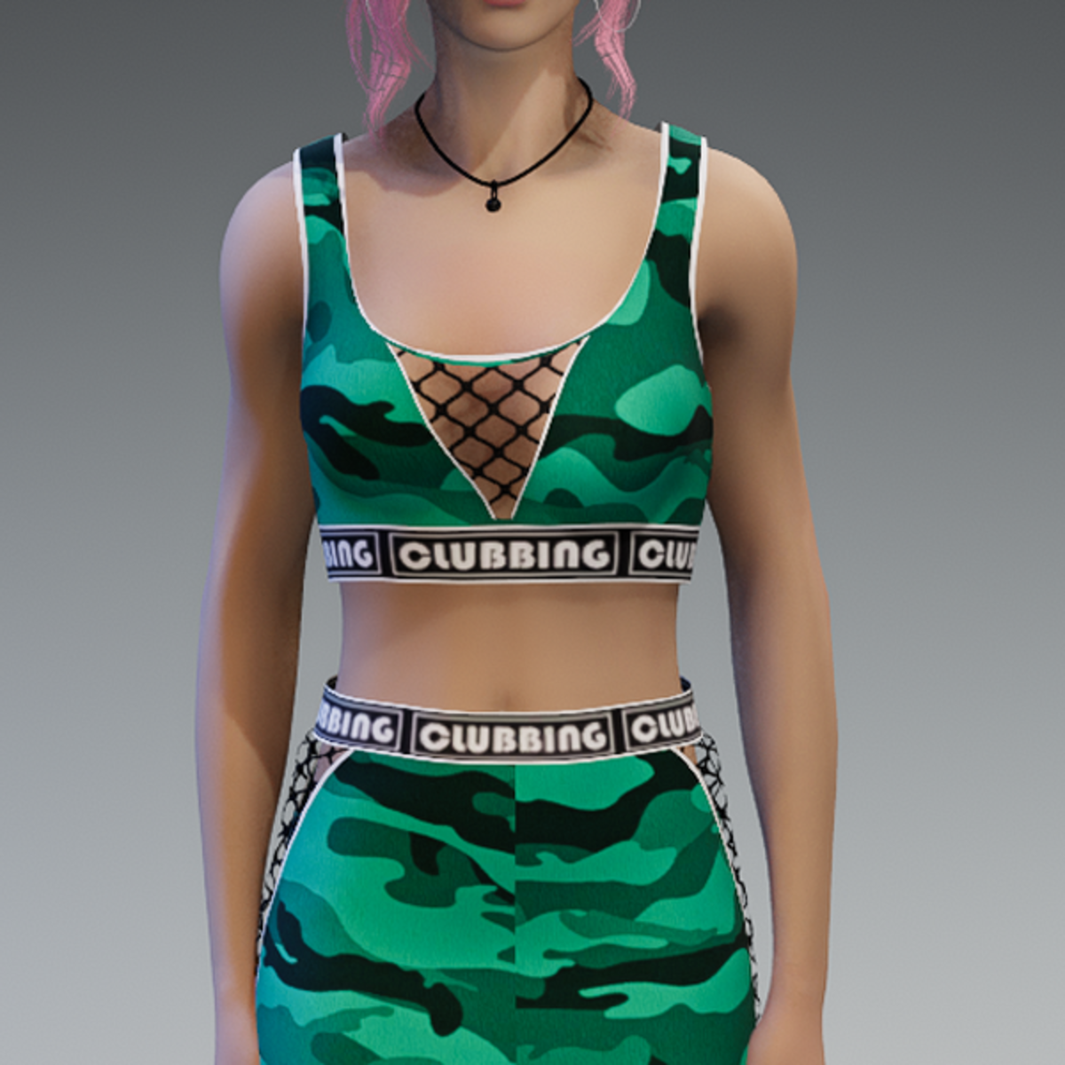 - Clubbing Top /w Fishnet Application Camouflage Tropic