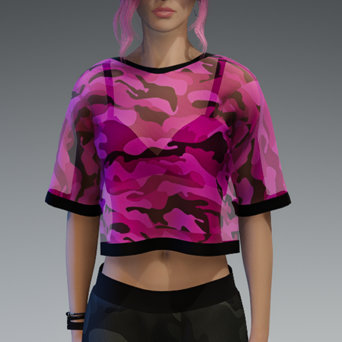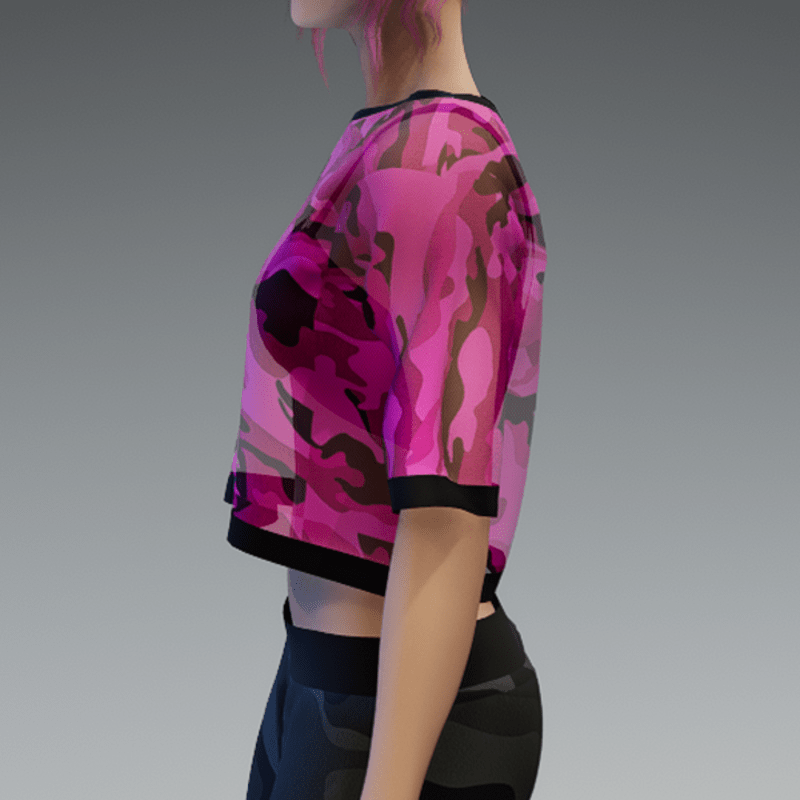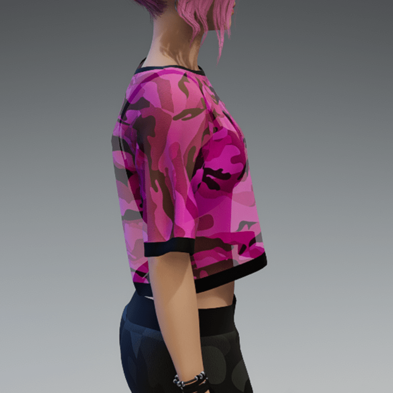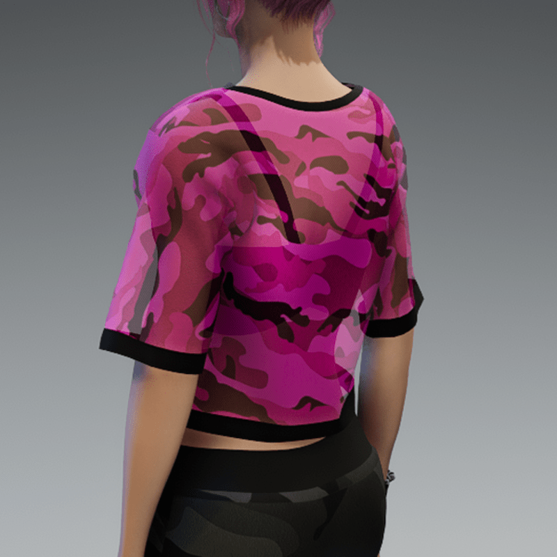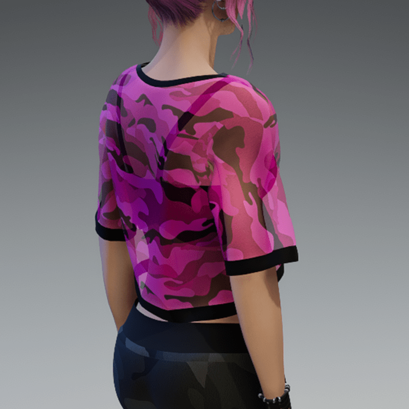 This shirt comes with a pink and transparent camouflage fabric and a black bikini top under it. If you're not sure about how this one will look like on your avatar, feel free to use my 'siggys store' version first before buying this one. If you're interested in the camouflage sweatpants - you can find it in my store, too! Enjoy!