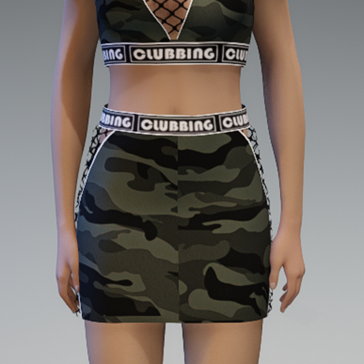 - Clubbing Skirt /w Fishnet Application Camouflage