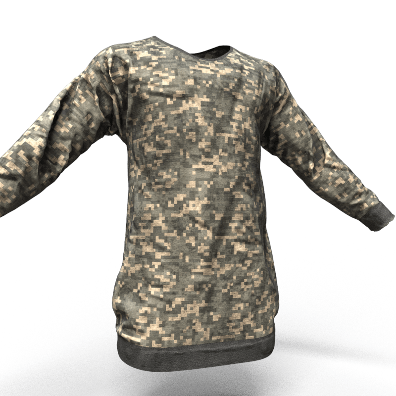Brand new Sweatshirt Digital Woodland! -High quality CGI created by industry professionals- -Top level textures- -You can dynamically simulate this cloth over your avatar to fit your favorite style- Bringing real swag into virtual worlds. Flex your experience!
