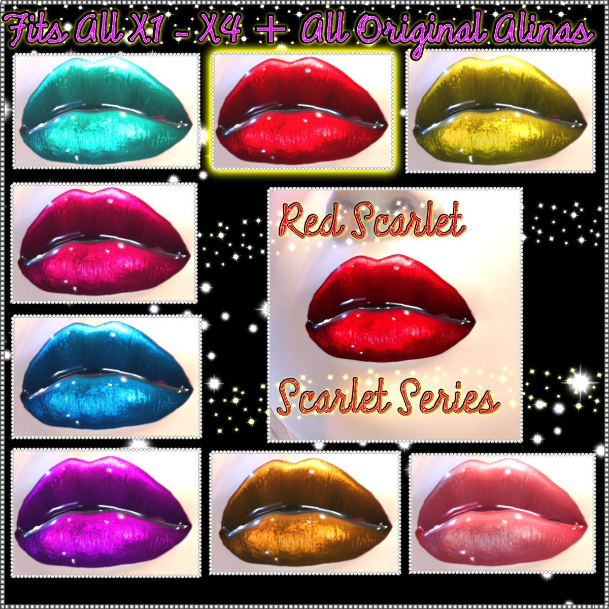 FREE for X1 - X4. Red Scarlet Lips - Scarlet Series - Fits all Original Alina & X1 - X4 Avatars. It falls on top of the avatar lips and moves as you speak as well. These lips will cover the entire mouth area and is perfect for the Original Alinas. X1 - X4 will have the closed mouth look of the Original Alinas. For the X1 - X4 is free, contact me ingame and I will send you a link. Enjoy! :) NOTE: In your Lookbook will be under clothing.