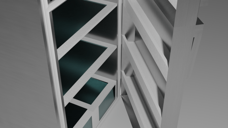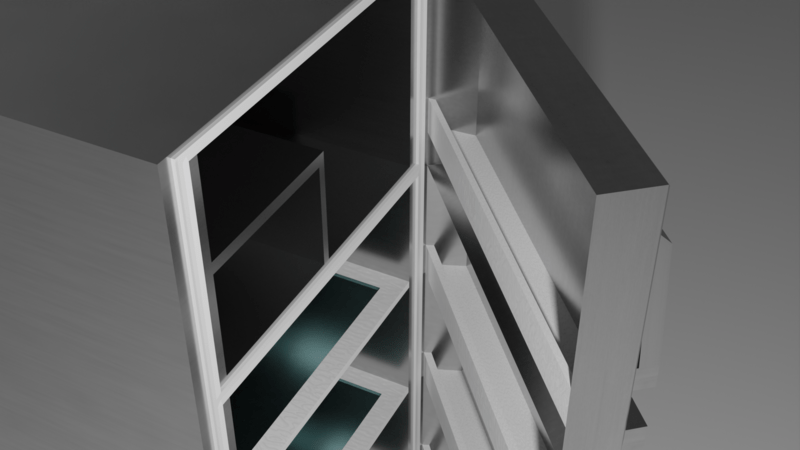 A modern day metallic fridge. Each door is moveable on their own if you feel like adding items inside!