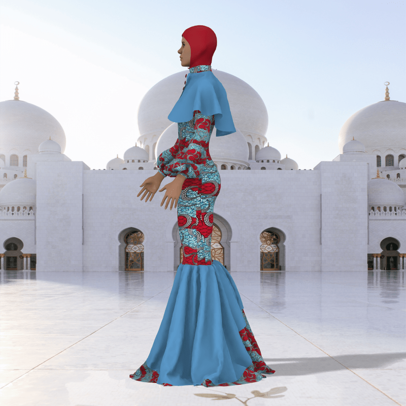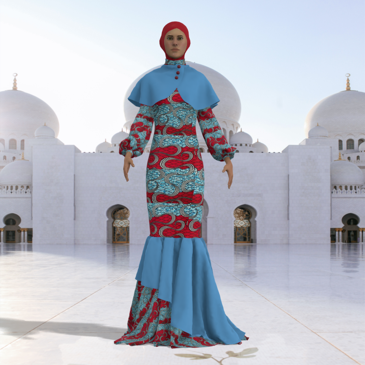 Do you want to celebrate EID on Sansar Here is a Female cloth for EID with African fabric, and a hijab. It is a long flowing gown with nice aesthetics, the cloth may appear with darker shades when stimulated. Made on the default avatar Stimulate and Enjoy EID MUBARAK