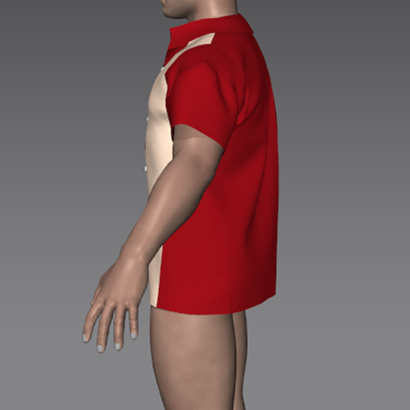 A lightweight, loose-fitting shortsleeve bowling shirt with the unique styling of the 1950's: deep red cotton with ivory front panels. Sleeves extra-short... for bowling ease. Great retro look for rockabilly and swing dancing... or just hanging out.
