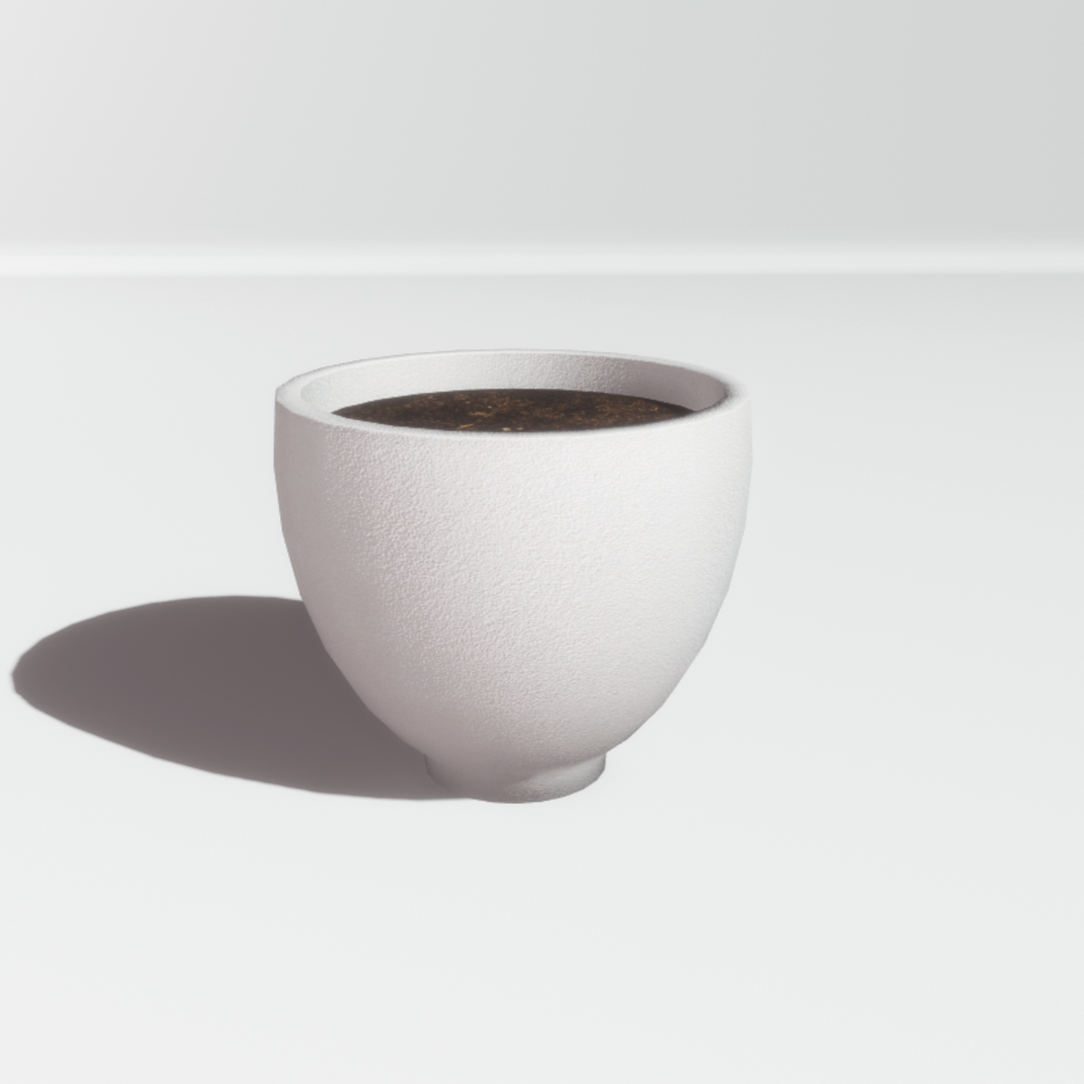 A white pot with soil, made with cement in modern style. With collision. Plant sold separably.