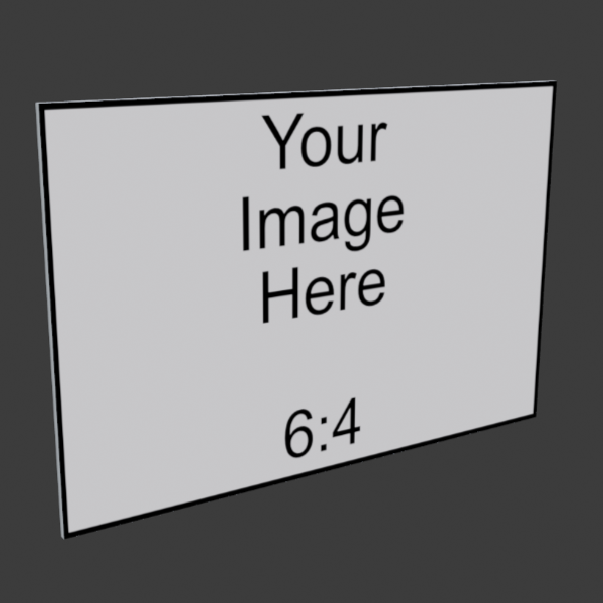 This image panel comes standard with white sides and a matte finish. After adding it to your scene you can change the Albedo Map on the image material to add your image. If your image has a matching aspect ratio then it will not come out looking squished. The sides are white by default but you can easily change the tint to any color you like. You can also change the shader to Standard + Emissive to get a nice glowing border. Enjoy (*・‿・)ノ⌒*:・゚✧