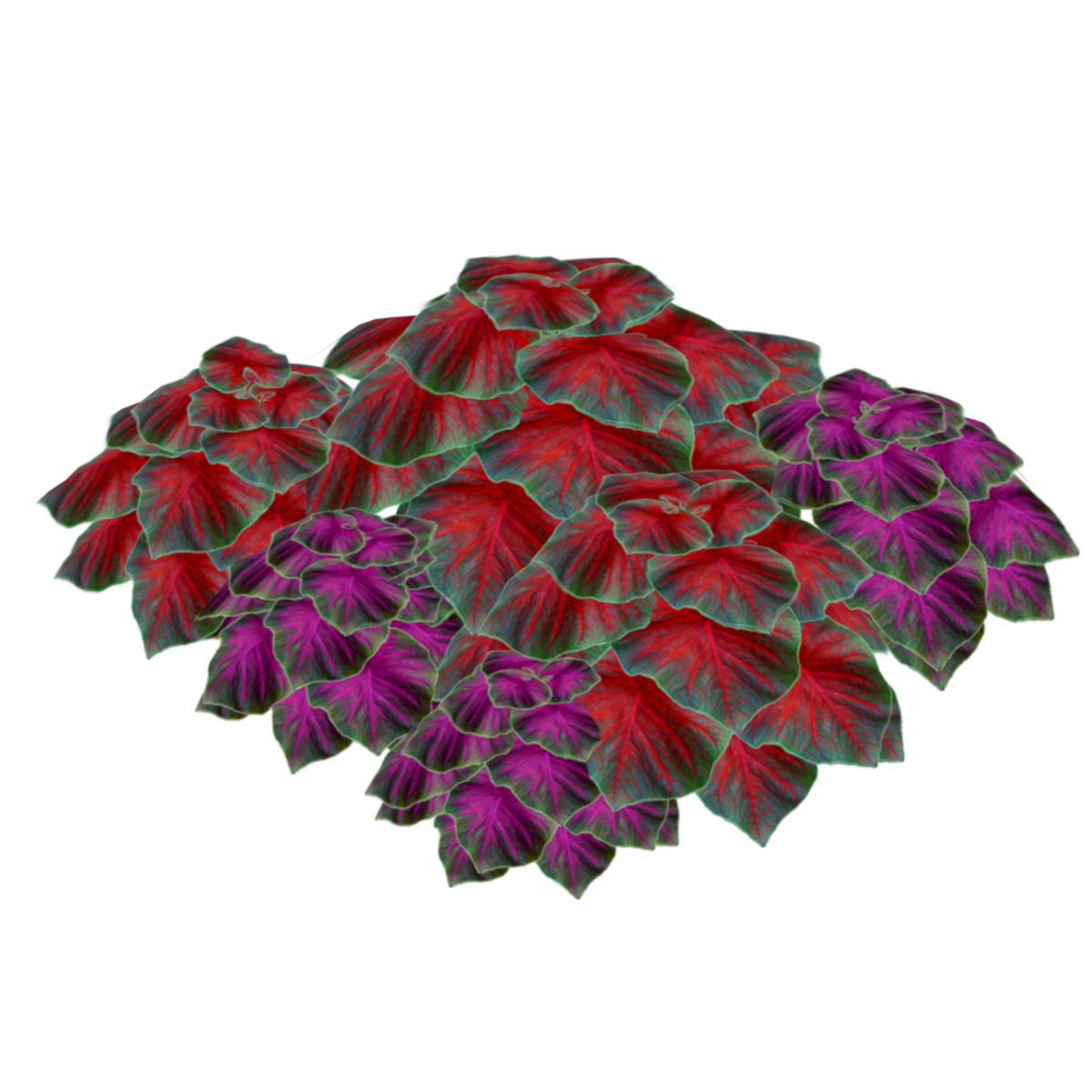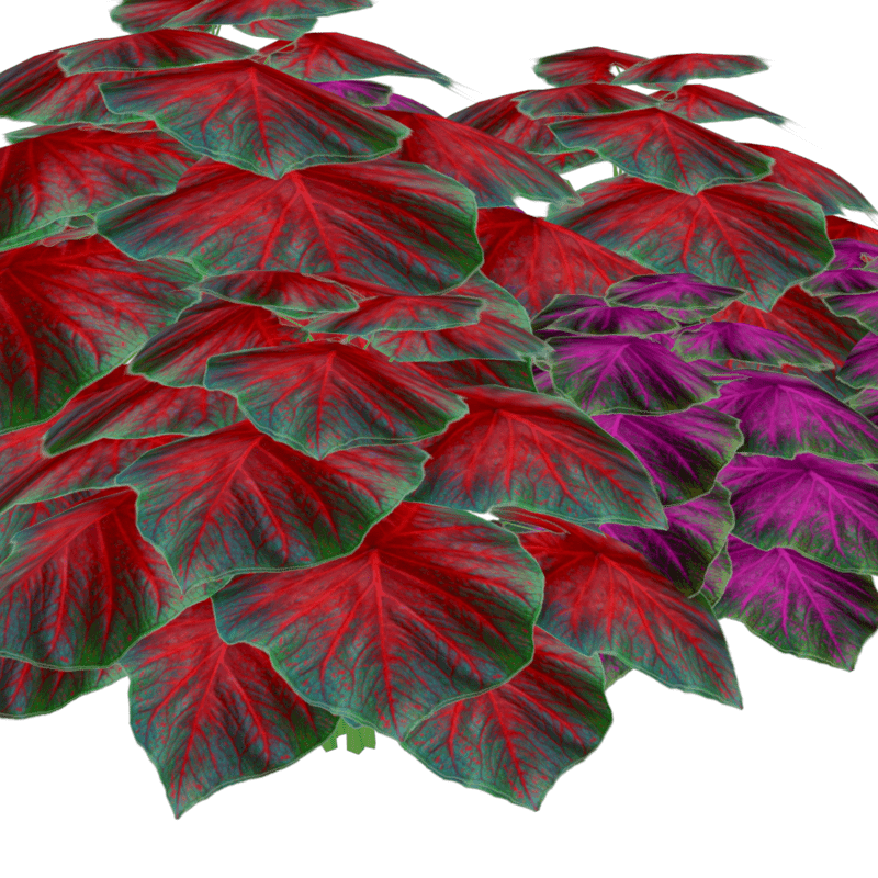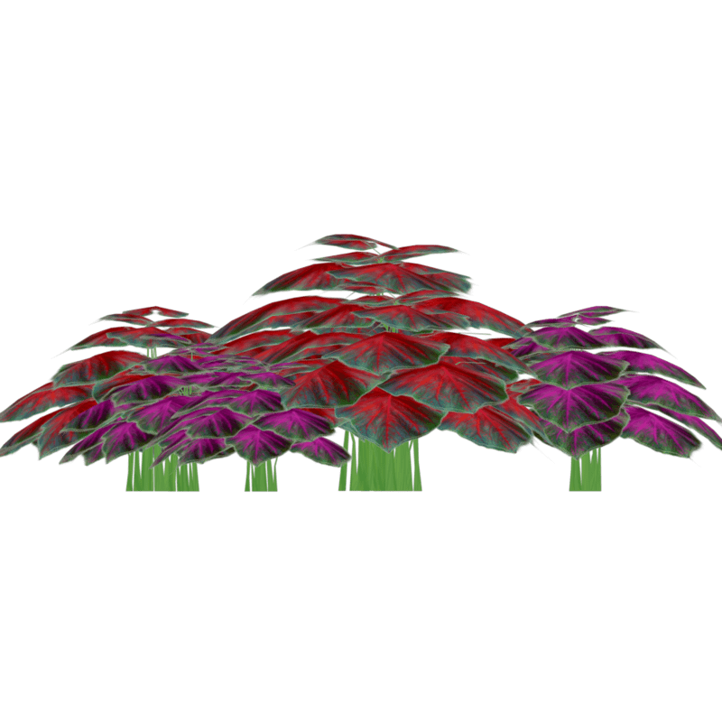 This is 6 little groups of caladiums mixed together to give a natural look as 2 different caladium plants grown together. Polygon count: 7656. There is no collision on this so you can walk through it. I have many colors. To see this flower in Atlas, please visit "LovedWarrior's Ground Plants." Please note that all my flowers are 100% detailed mesh. Each petal, pollen, stalk and leaf is made by hand and placed by hand. All the textures are also made by me. If you have requests, show me a picture of a flower and I will tell you if I can make it for you. Enjoy!