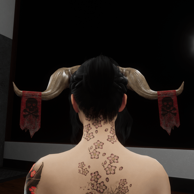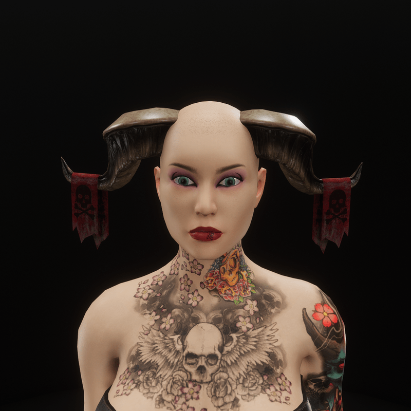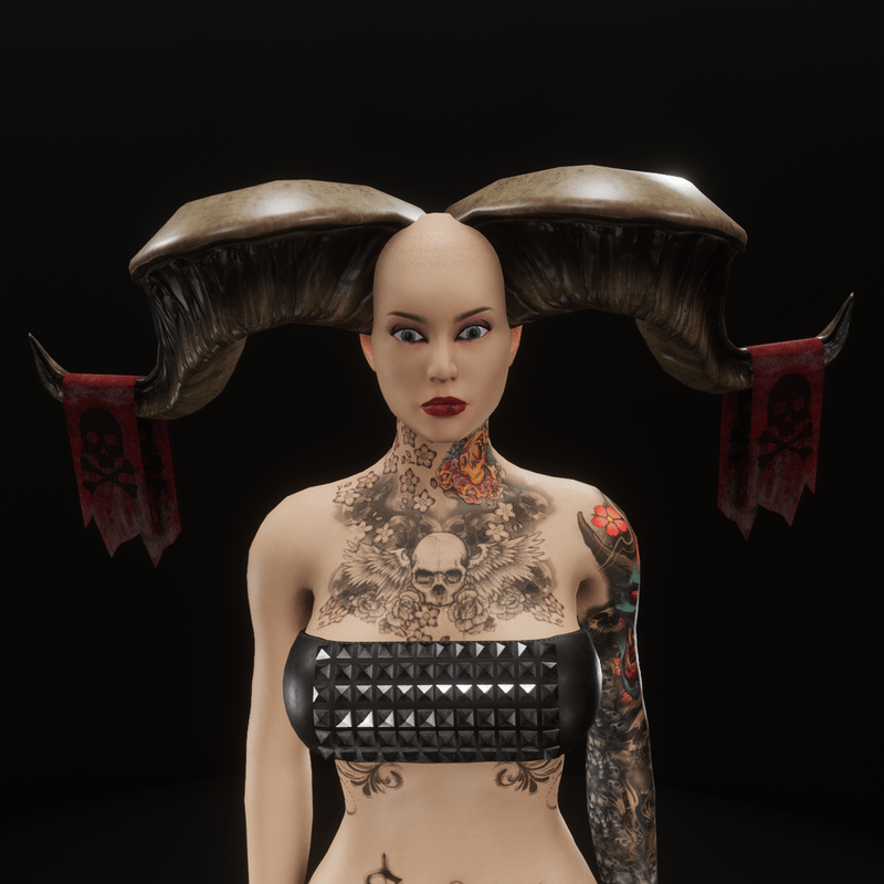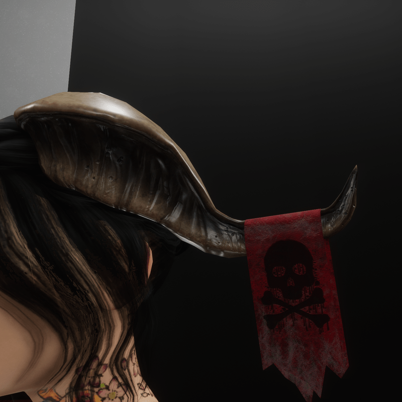 Horns with banners, worn as attachment so can be easily resized to fit avatars, can be sized very large and still fit, see pics. !! HAIR NOT INCLUDED!!