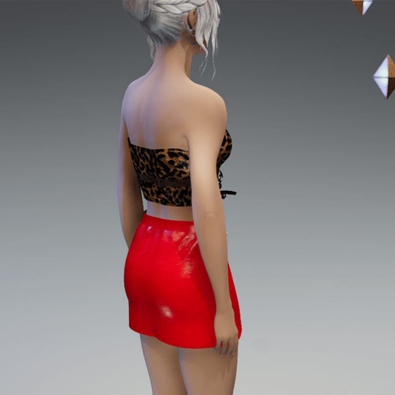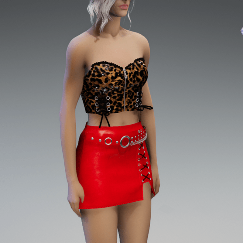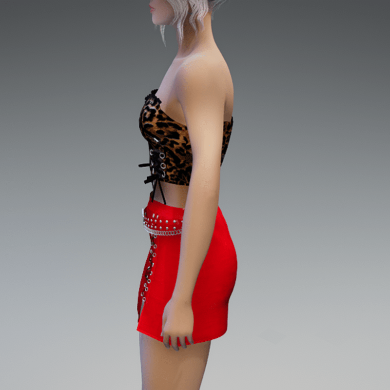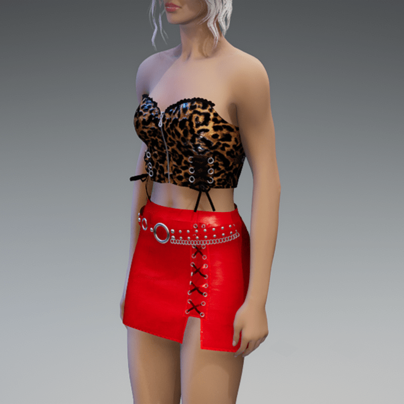 This leather mini skirt comes with some lacing on the front and a front-belt-application with lots of rivets and a chain. Enjoy! <3