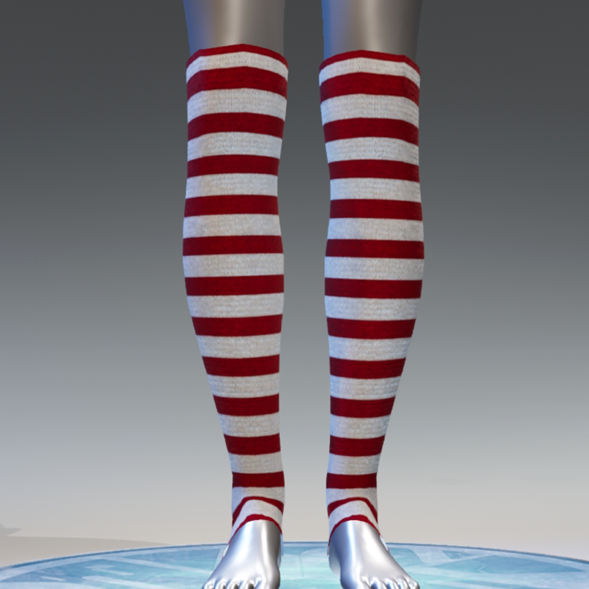 Rigged leg warmers with white and red stripes for female avatar 2. Ideal for elf costumes. Free item