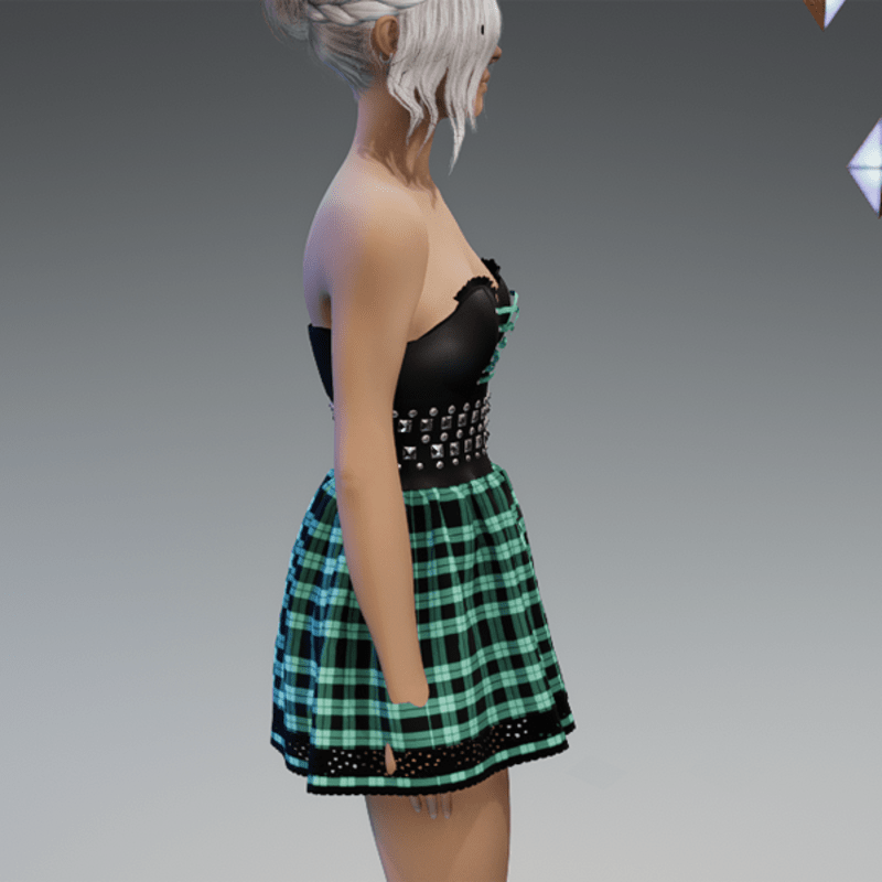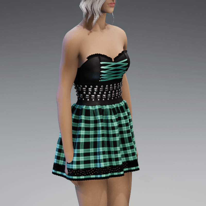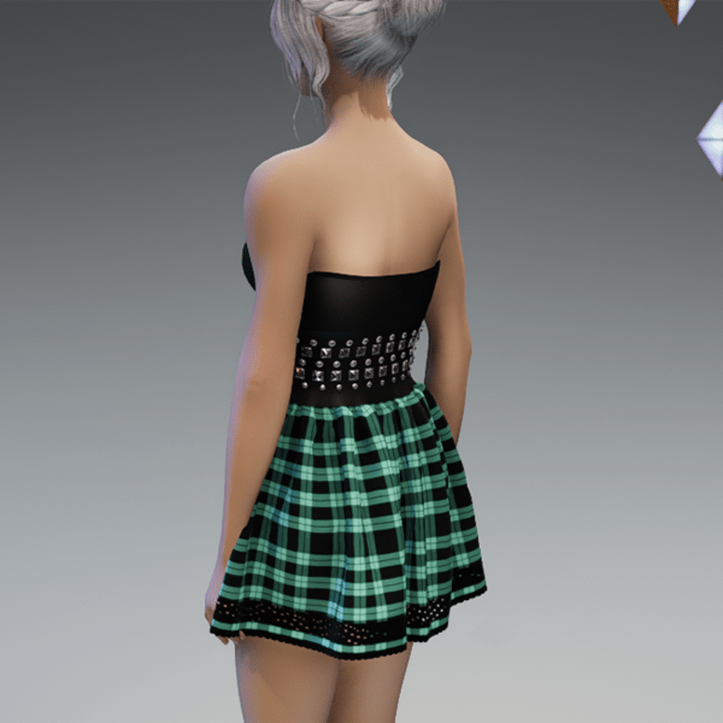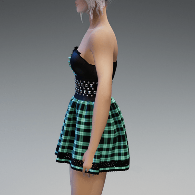 Punky Mini Dress Black & Mint Checkered