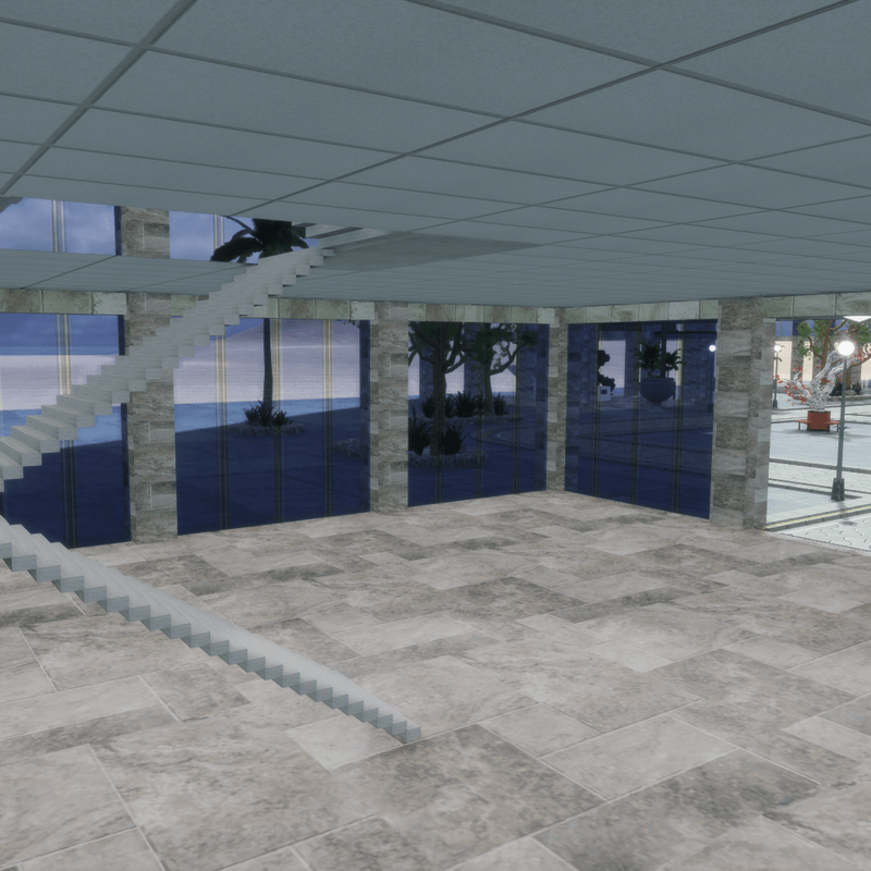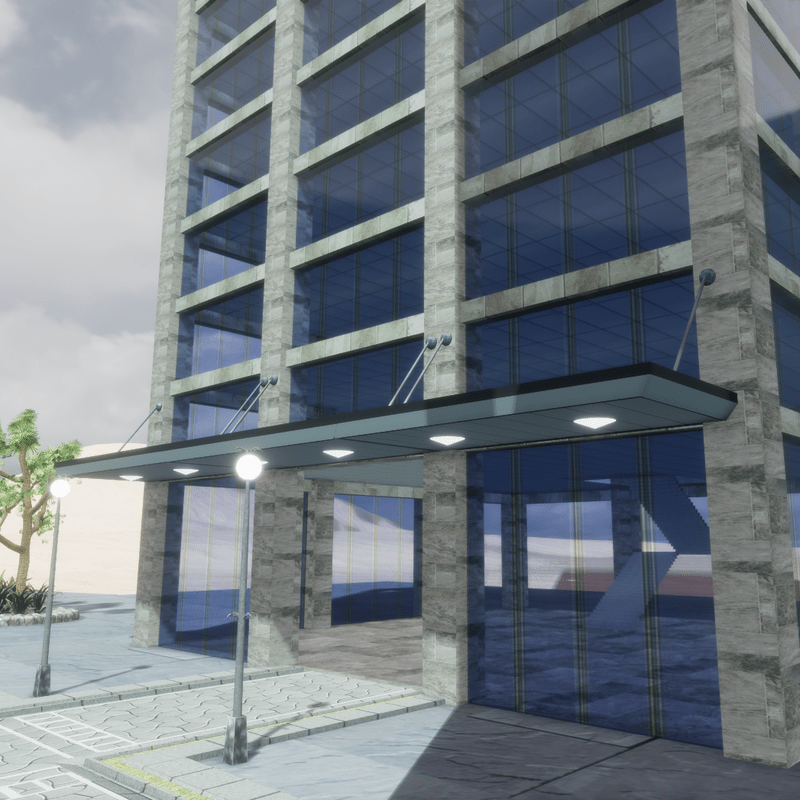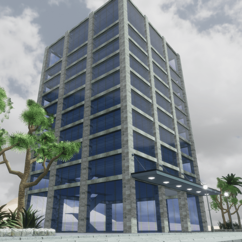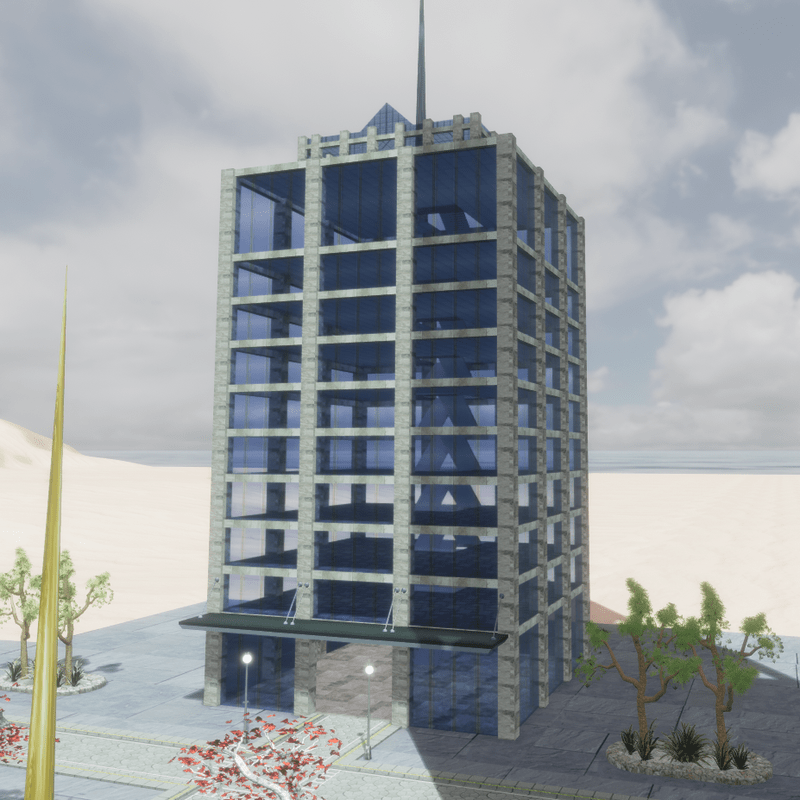 This is a smaller version of the 100 story skyscraper. It has 10 floors. A large lobby, 8 normal floors, a Skydeck and a penthouse. You can visit it at: sansar://sansar.com/experience/ambard/model-testing