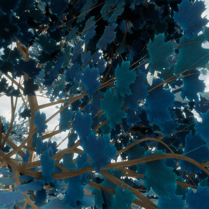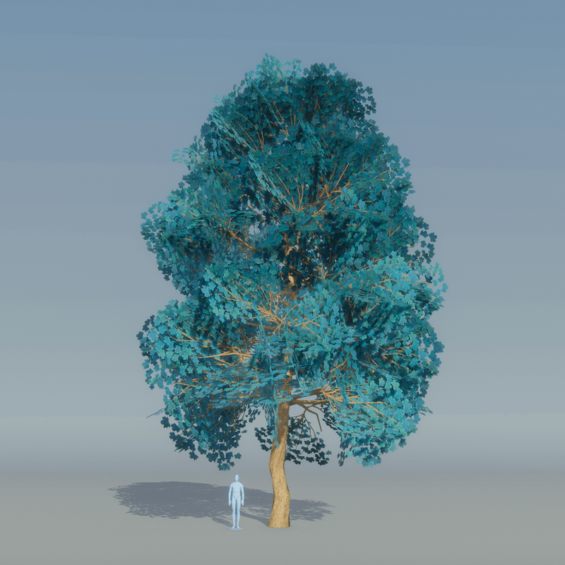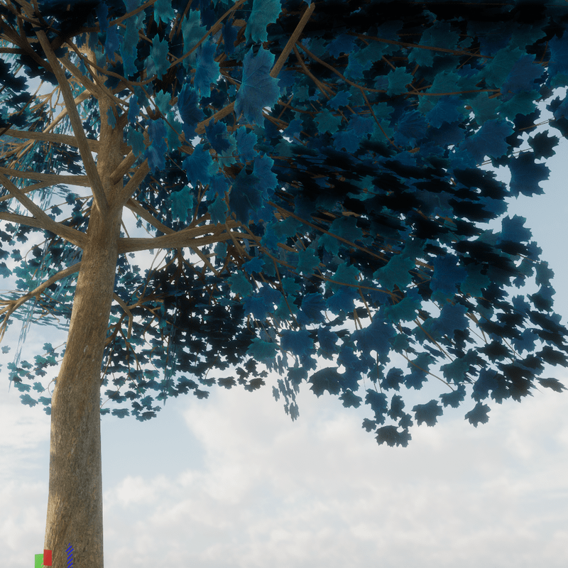Blue Maple Tree variation 3 2913 Triangles Trunk collision You can see it at The Worlds factory: https://atlas.sansar.com/experiences/lluisindigo/worlds-factory#Maple_Blue
