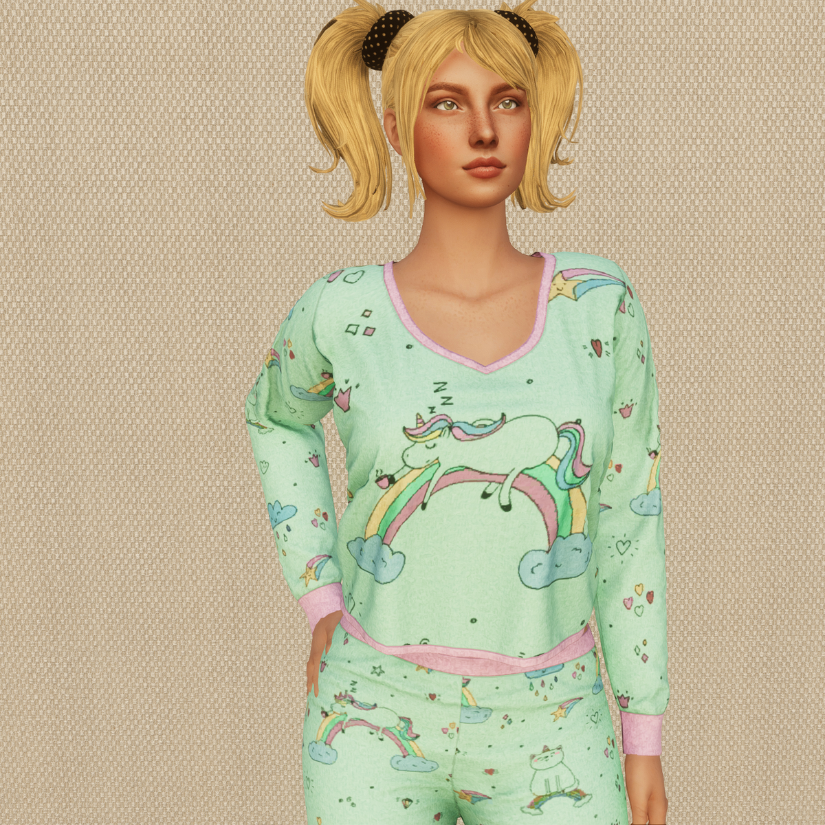 Sleepy Unicorn Pajama Party Set Get Demo Here: https://store.sansar.com/listings/28a4eae5-9192-42aa-a948-9bdbc75ea6dc/sleepy-unicorn-pajama-party---demo Trying on the available Demo is the best way to assure your satisfaction with quality and fit. The lighting isn't the best in the lookbook and the shoulders seem to fit funny in the lookbook as well, so I recommend wearing the demo in world to see how it truly looks on you. Visit my inworld store experience to find discounted items that or not available on the marketplace and also look for miniature butterflies to find free mystery gifts! https://atlas.sansar.com/experiences/lonaleelancaster/lona