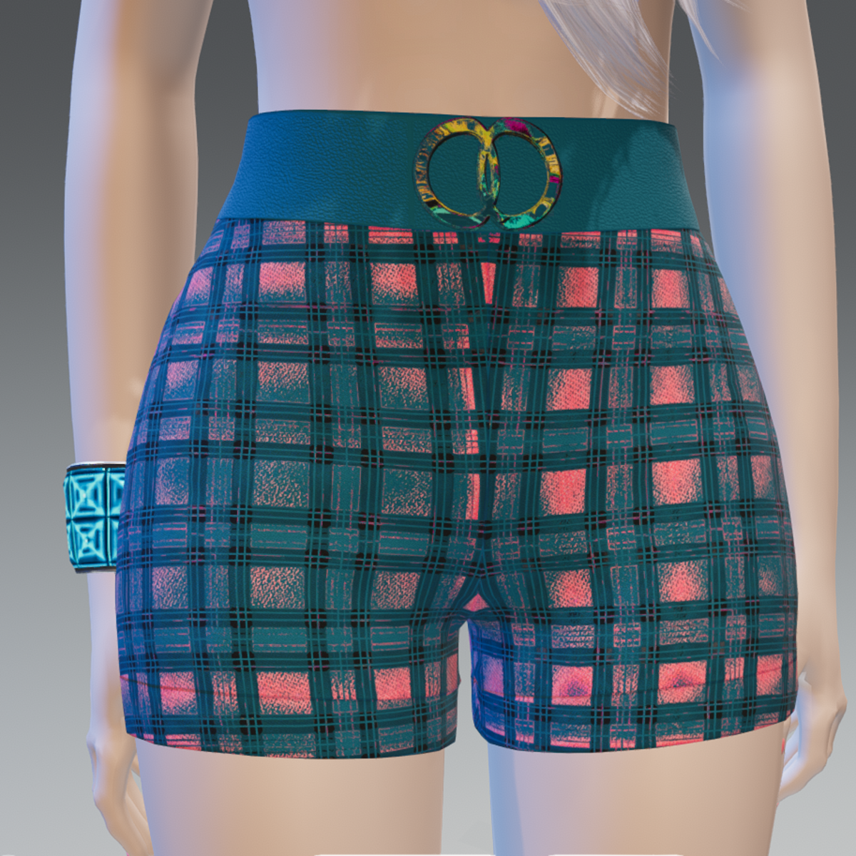 High Shorts w/Leather Belt Stressed-Plaid - Female