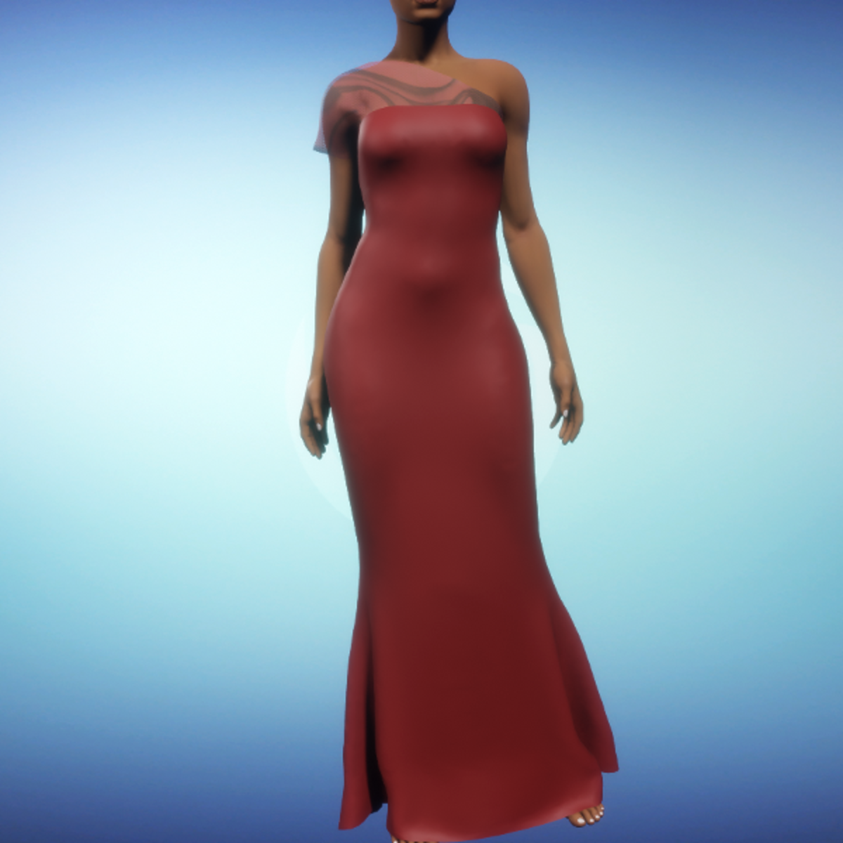 Elegant full-length gown in silk. The shoulder fabric is in a sheer, smoky print. By Sweet Distractions