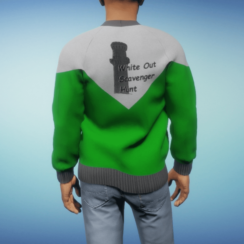 This sweatshirt was a special edition for the Scavenger Hunt edition of Atlas Hopping with Berry and Drax. Be sure to turn on simulate cloth when wearing the garment so that you can tug as necessary depending on the bottoms you choose.