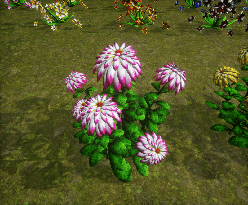 A group of 7 dahlia plants for your lovely lands and gardens. There is no collision on this mesh so you can walk through it. I have many colors. Please note that all my flowers are 100% detailed mesh. Each petal, pollen, stalk and leaf is made by hand and placed by hand. All the textures are also made by me. Enjoy!