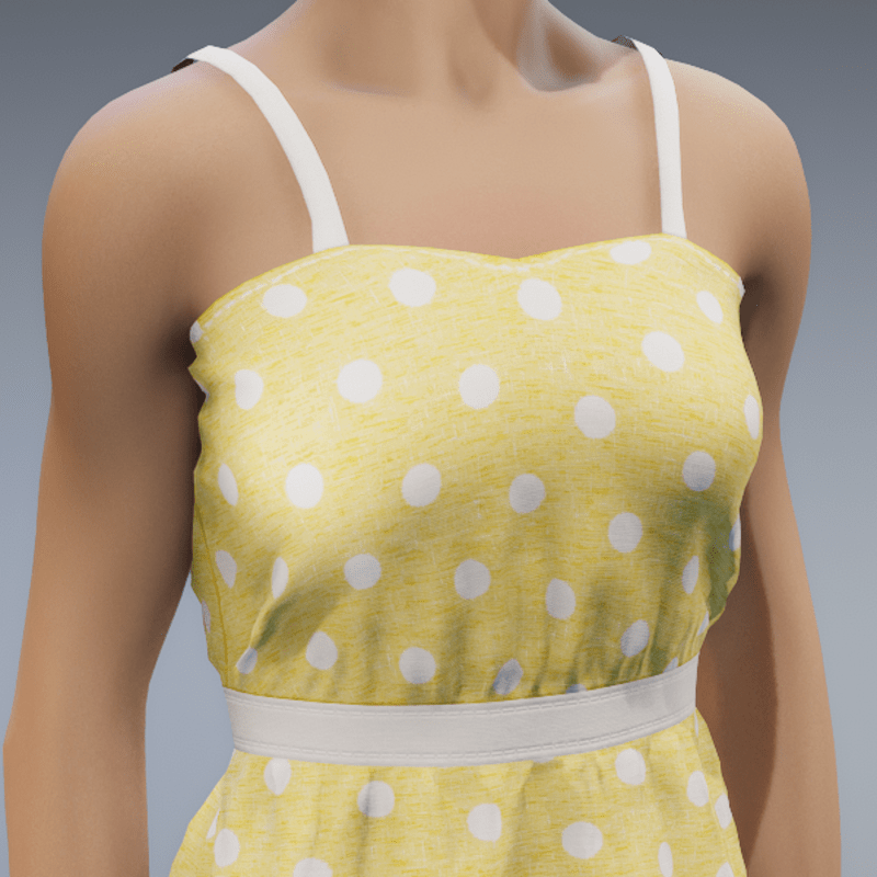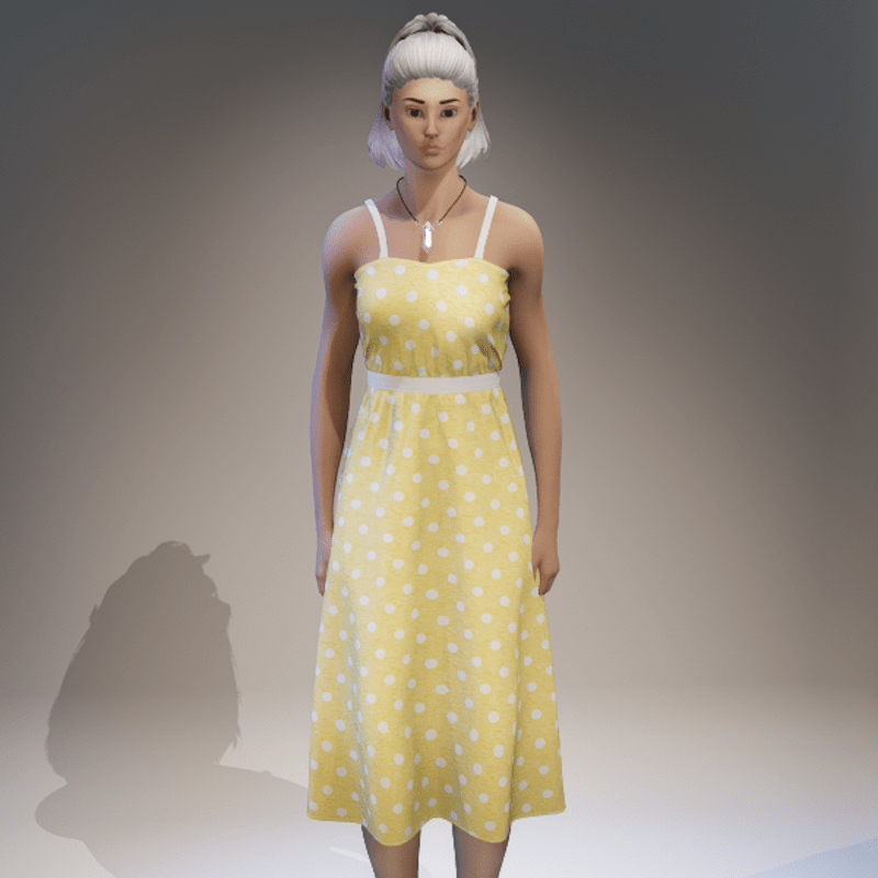 A simple strap dress, light and airy perfect for those hot summer days. Fitted to the default female framed avatar. A marvelous designer clothing item therefor is able to be simulated and transformed in order to fit many different avatar body shapes. Other colours available on store. Contact "TheNick-1981" through Sansar or Sansar discord if you need re-rigging, a custom design or if there is a problem etc.