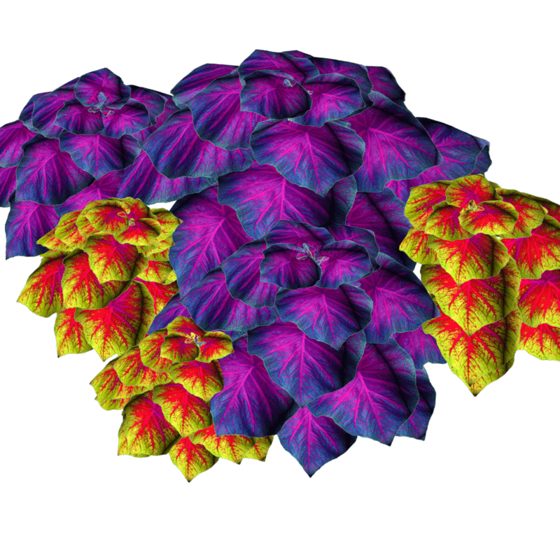 This is 6 little groups of caladiums mixed together to give a natural look as 2 different caladium plants grown together. Polygon count: 7656. There is no collision on this so you can walk through it. I have many colors. To see this flower in Atlas, please visit "LovedWarrior's Ground Plants." Please note that all my flowers are 100% detailed mesh. Each petal, pollen, stalk and leaf is made by hand and placed by hand. All the textures are also made by me. If you have requests, show me a picture of a flower and I will tell you if I can make it for you. Enjoy!