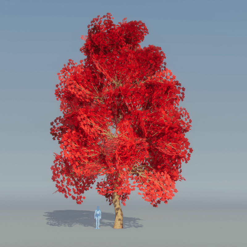 Red Maple Tree variation 1 2913 Triangles Trunk collision You can see it at The Worlds factory: https://atlas.sansar.com/experiences/lluisindigo/worlds-factory#Maple_red