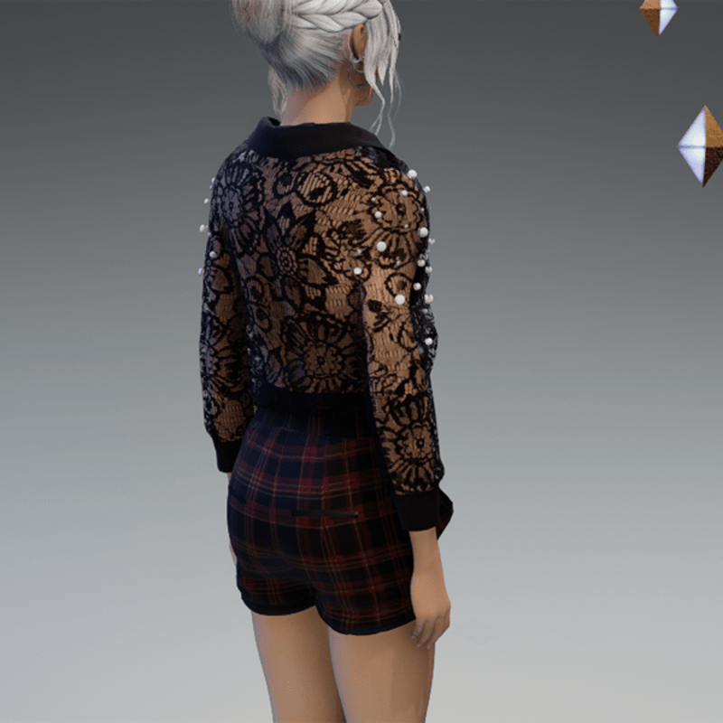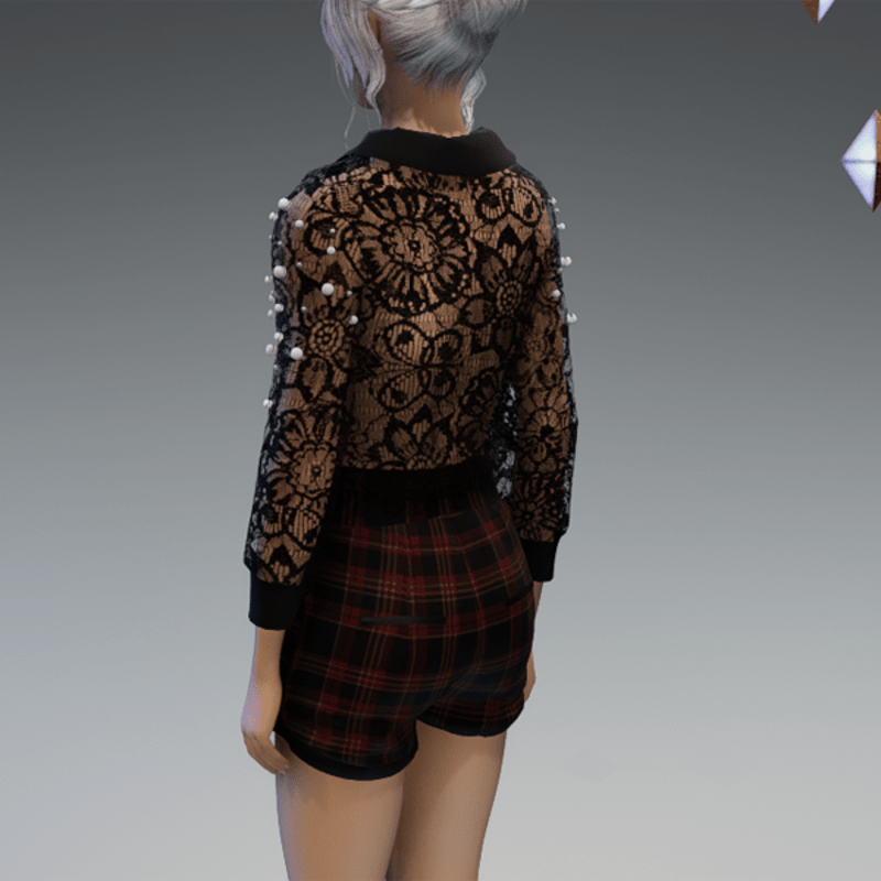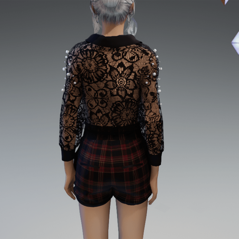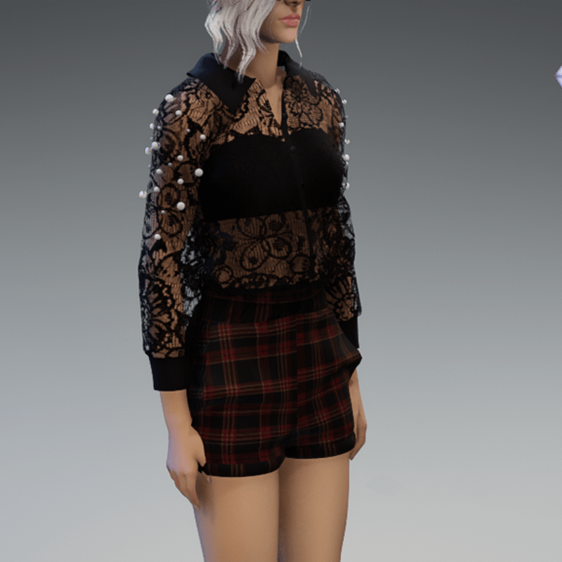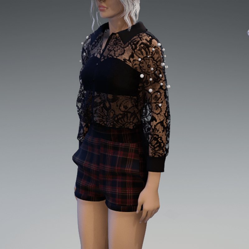 - Elegant Blouse with Pearls & Short Pants Outfit V4 Checkered