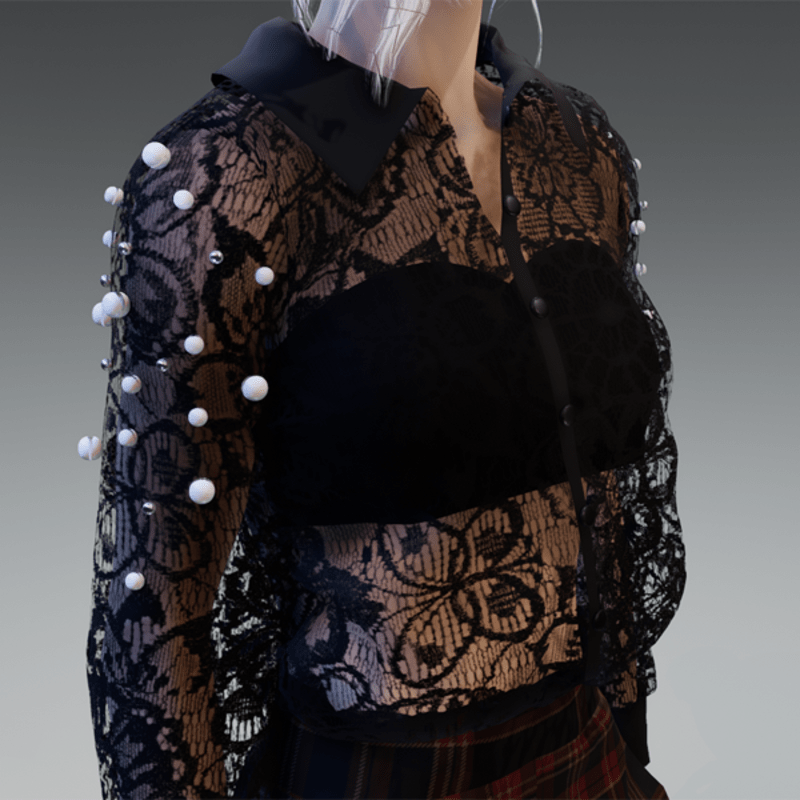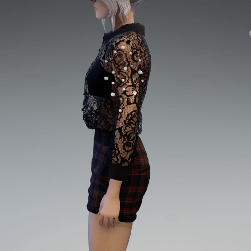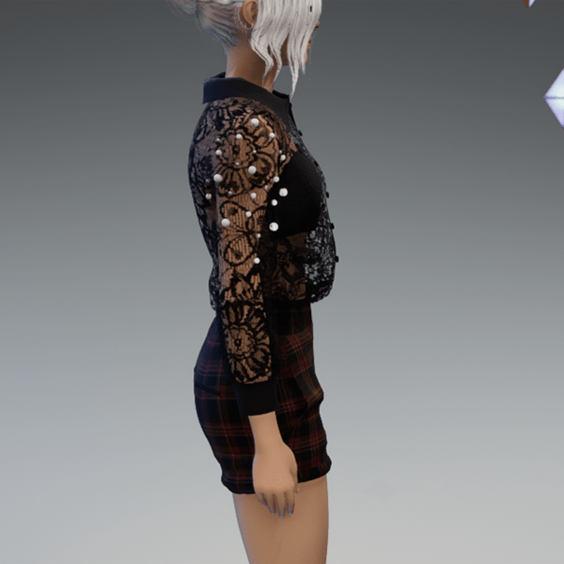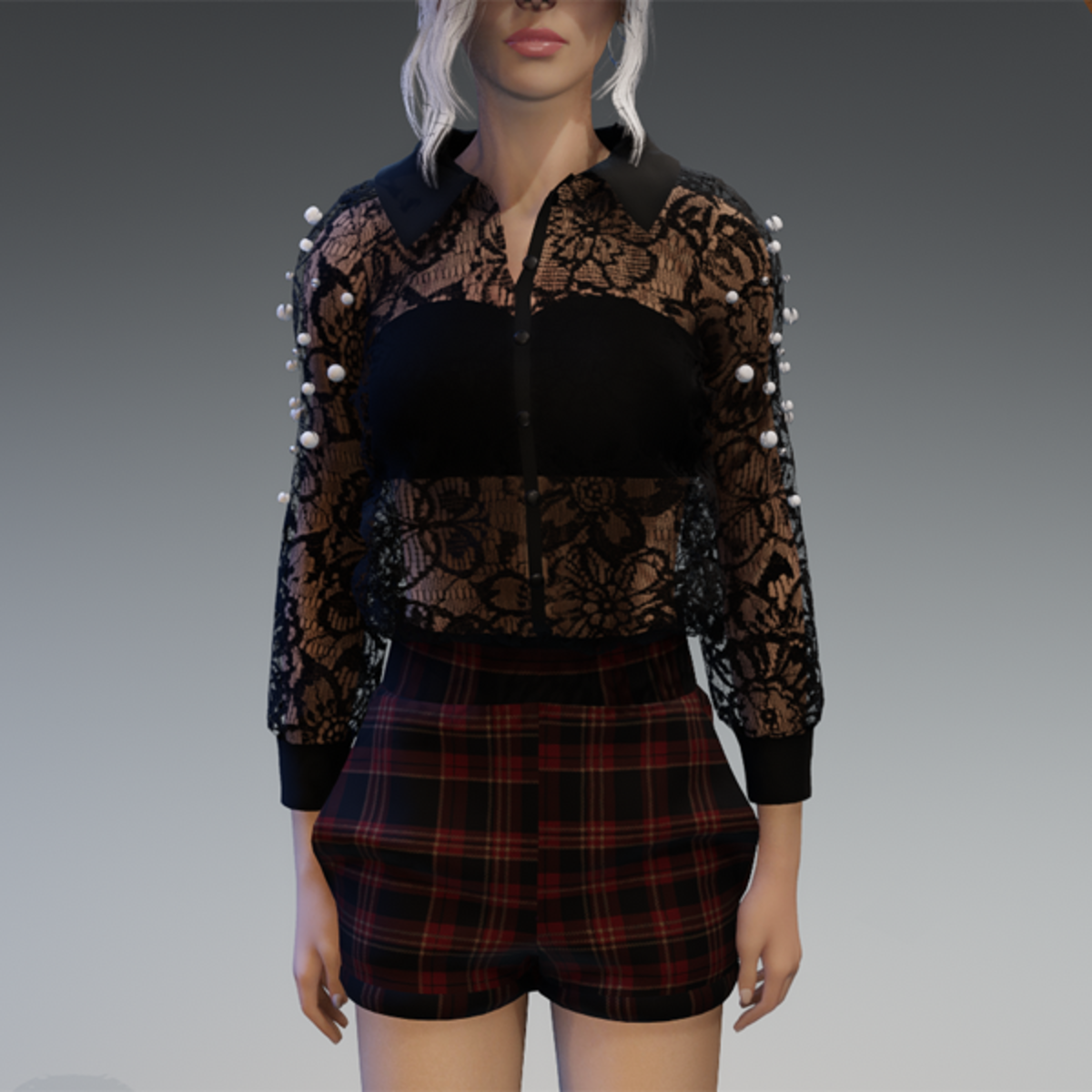 - Elegant Blouse with Pearls & Short Pants Outfit V4 Checkered