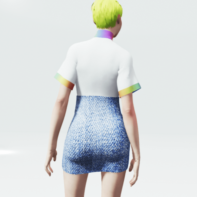 High Waisted Denim Skirt with a Rainbow Design