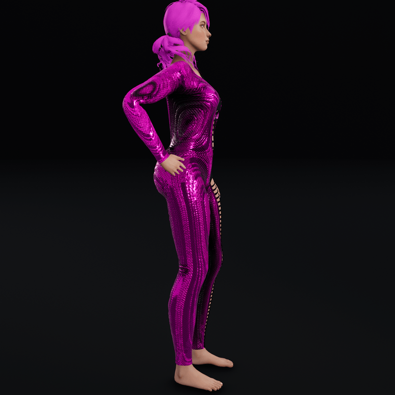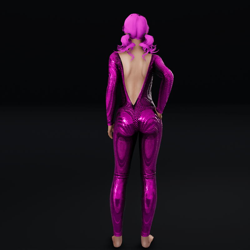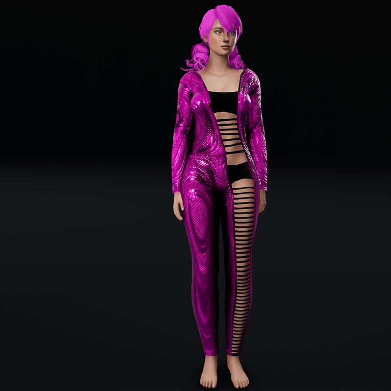 - Metal Pink Not Emissive - Bodysuit with Ripped Front
