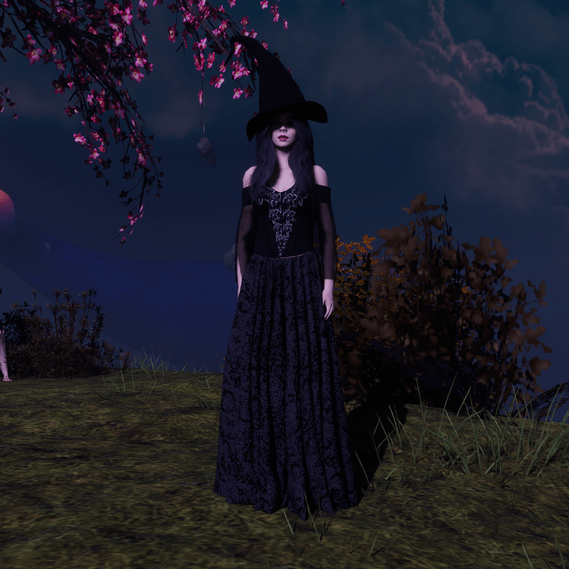 Black witch Costume. can be seen in world follow link here https://atlas.sansar.com/experiences/eleganceceleste-1611/elegance-celeste-new-store Hat can be found at this link also. Making your virtual world real