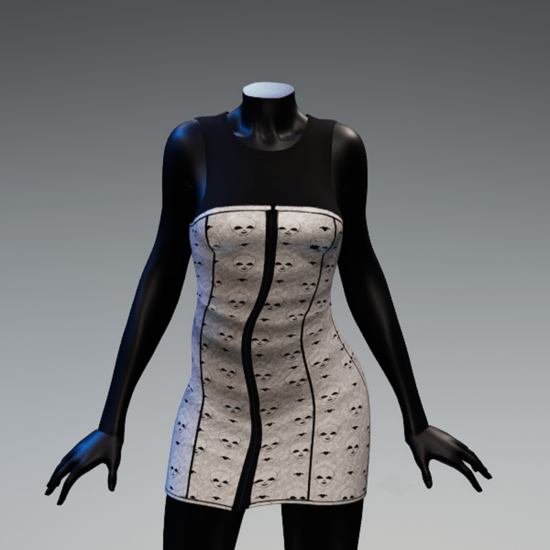 Skin tight zipper dress in a vintage goth texture. Zipper is 100% functional. Created with Marvelous Designer. No clipping should occur after proper adjustment. :) PLEASE DON'T FORGET TO RATE AFTER YOU BUY! THANK YOU :)! https://help.sansar.com/hc/en-us/articles/115005693363-Fitting-Marvelous-Designer-clothing-to-your-avatar