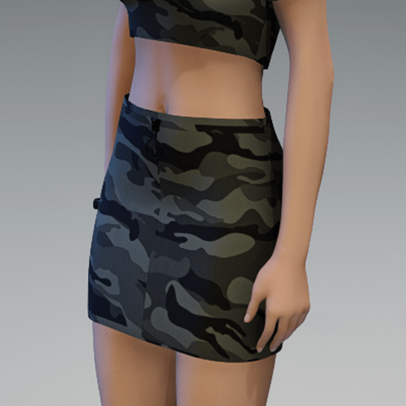 This mini skirt comes with another camouflage fabric and a black zipper on the front. If you're interested in the top showing in the images, you can find it in my store, too. Enjoy!