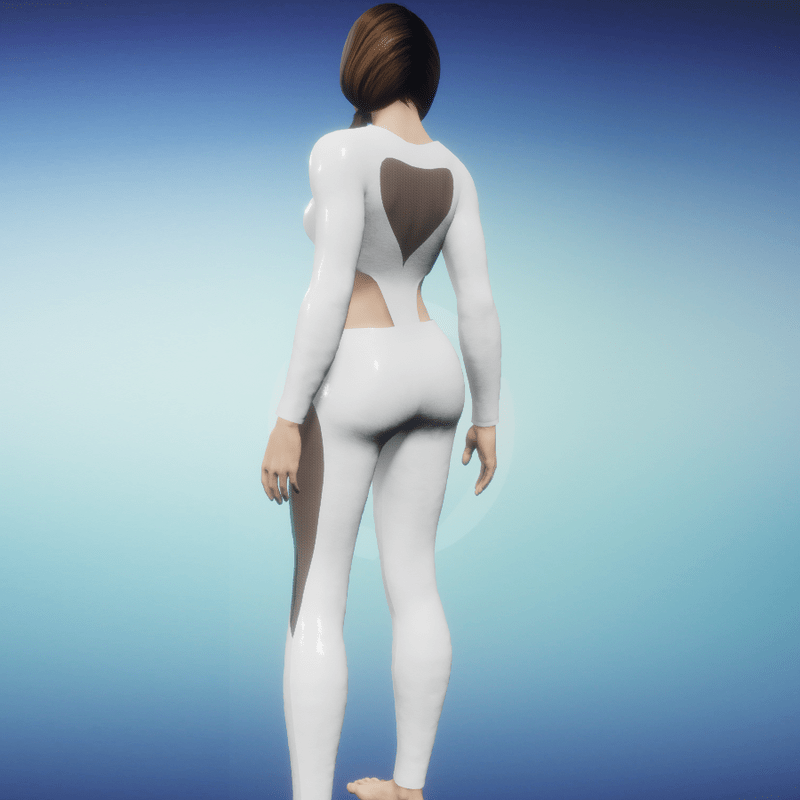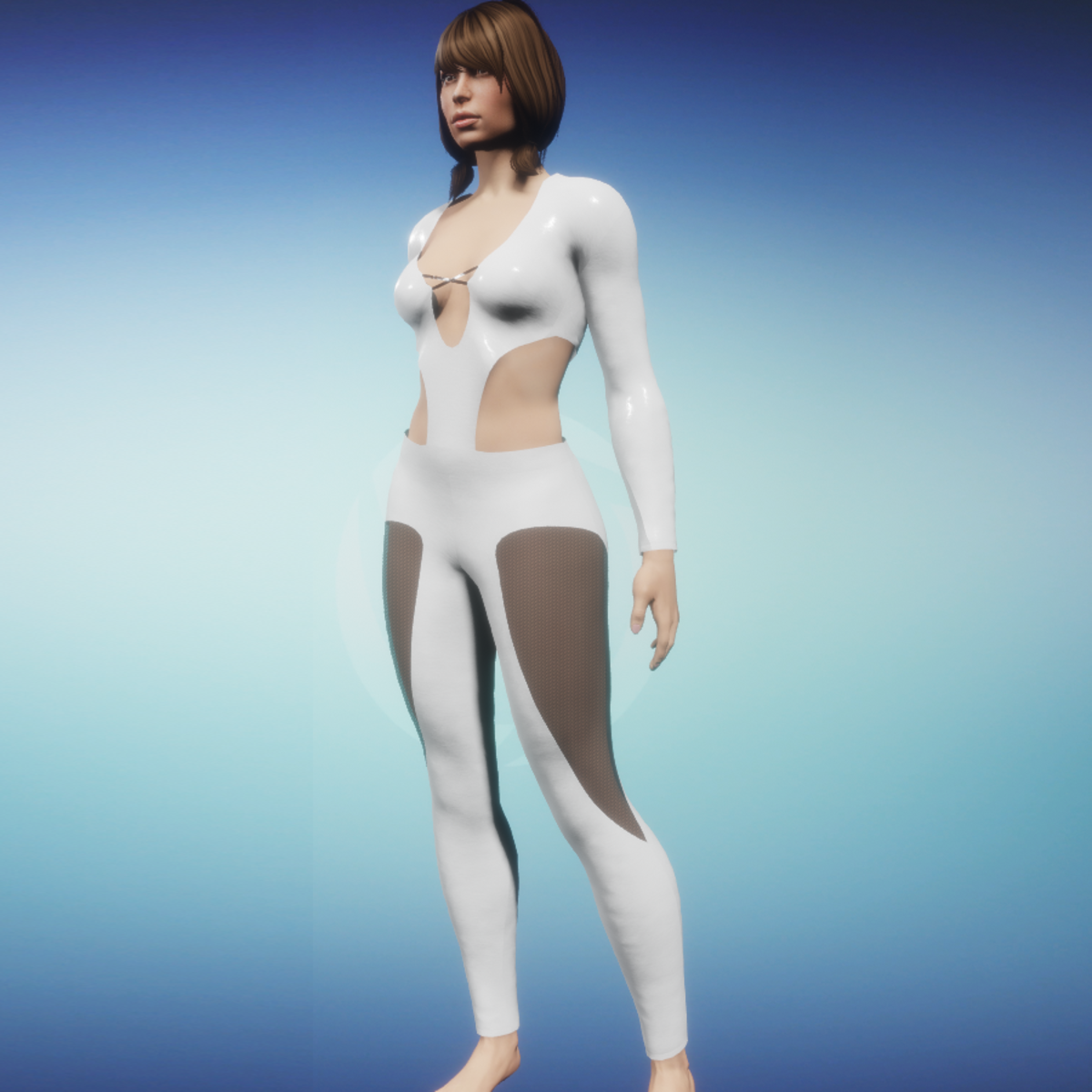Sexy latex catsuit with semi transparent parts. Please simulate the clothes before wearing to adjust it optimally.