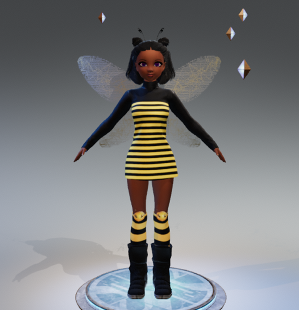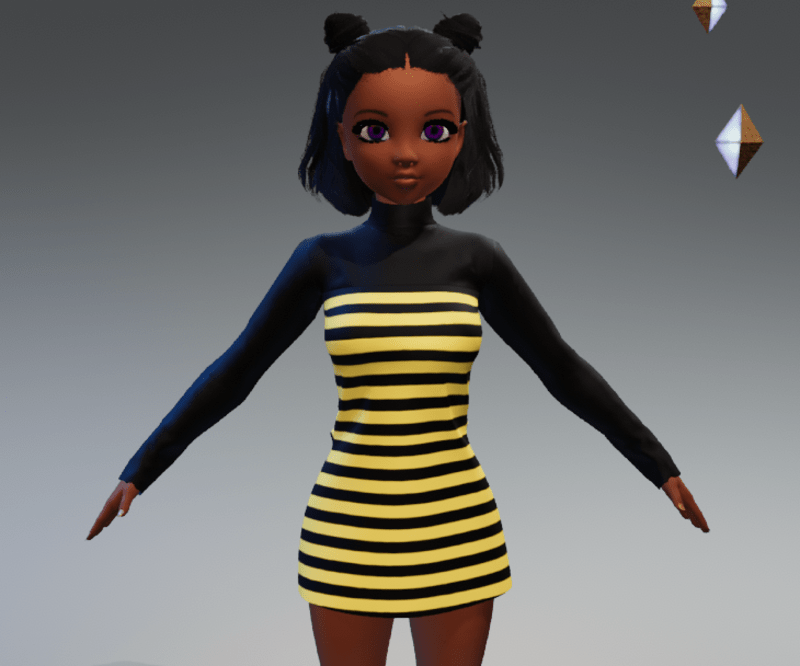 Cute Bee Costume Dress bee socks - https://store.sansar.com/listings/e8bc1a94-ab17-48be-81ad-87c4832527d0/high-socks or https://store.sansar.com/listings/0acb9d3a-3658-45b8-b90a-254a5d069609/high-socks bee wings - https://store.sansar.com/listings/5a4e81bd-95bf-4a8e-85ec-b698064ba592/bee-wings bee antennas - https://store.sansar.com/listings/0d91dd18-9de4-4fa7-ad4b-5cff14162e3f/antennas