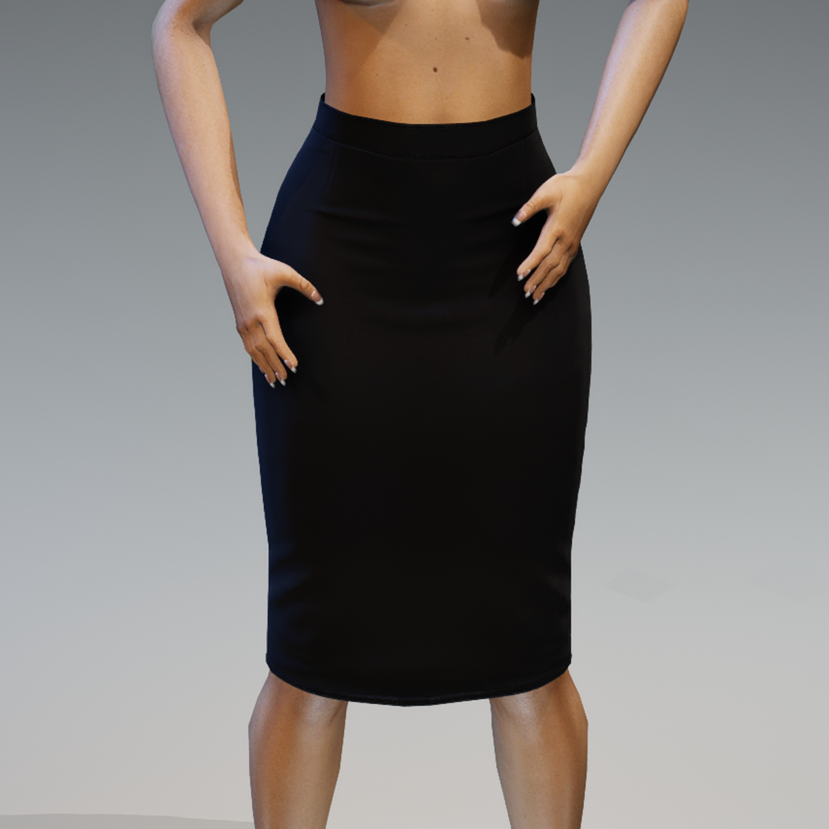 Simple black pencil skirt. This design is created on the alina-daisy avatar. You can simulate it on your avatar if it doesn't fit. See this short youtube video if you are new to Sansar: https://youtu.be/0yC-JVtql8k