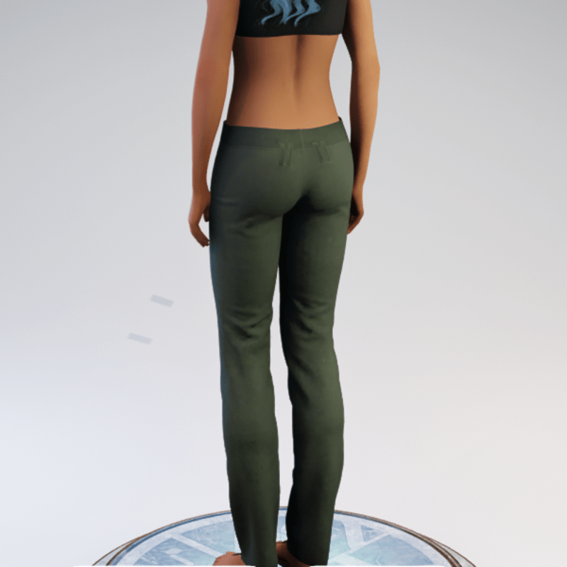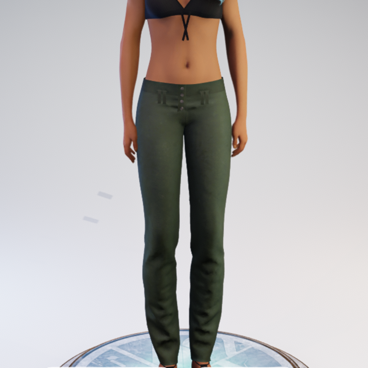 Buttoned Hip-hugger Pants - Brushed Denim - Green