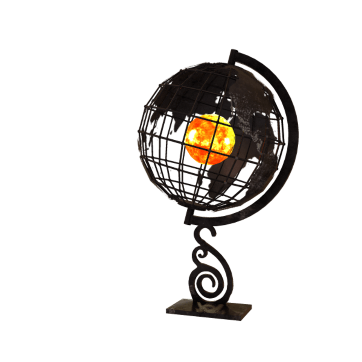 Resizeable large wrought iron globe lamp with animated core and built-in light...adjust if needed.
