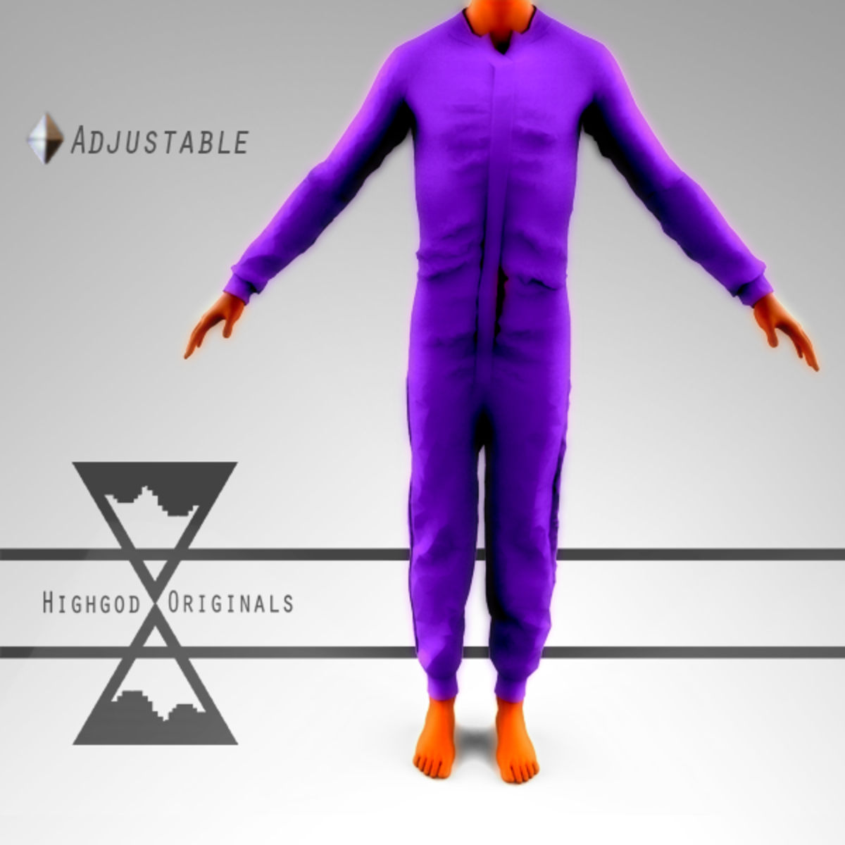 Purple pajamas fitted for males. Pajamas have the adjustable feature.