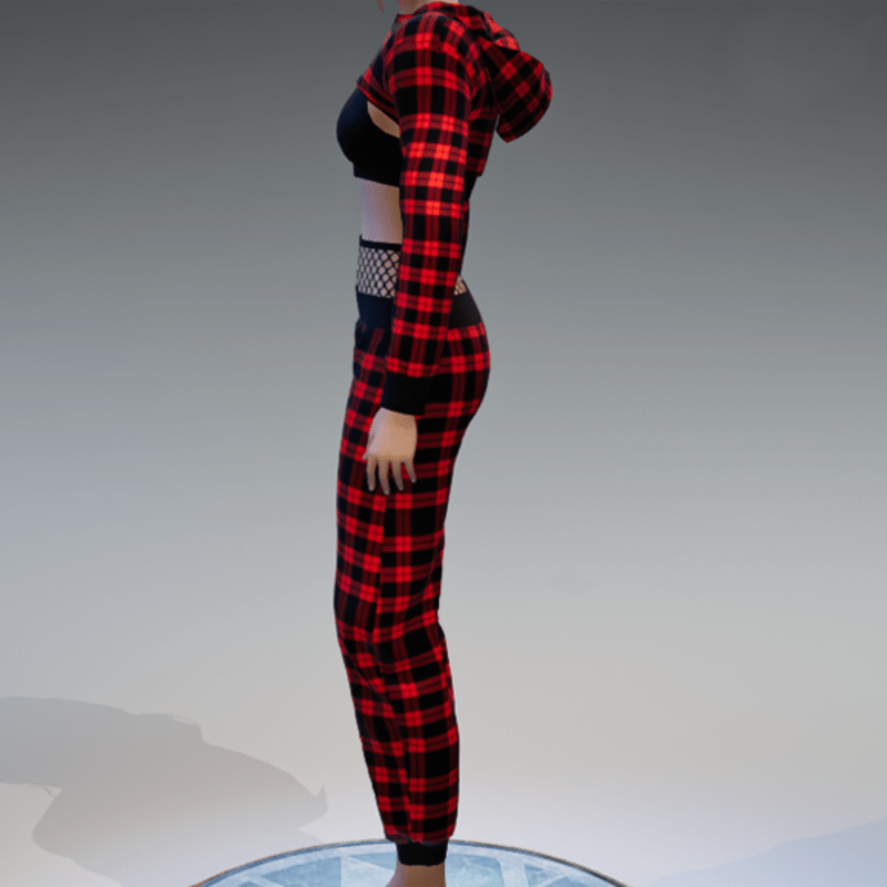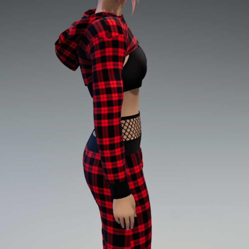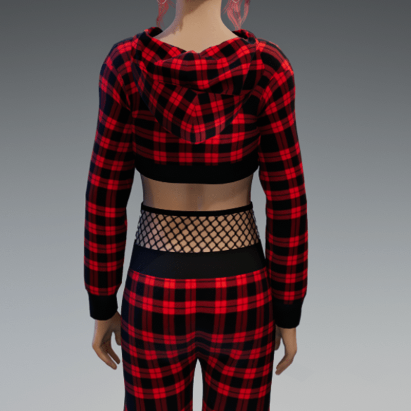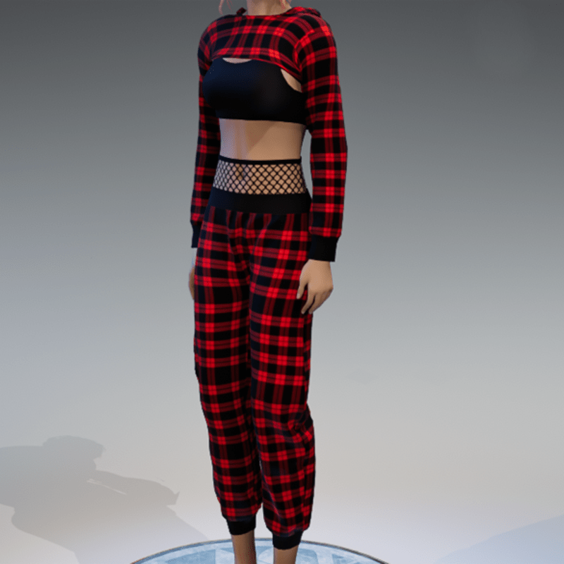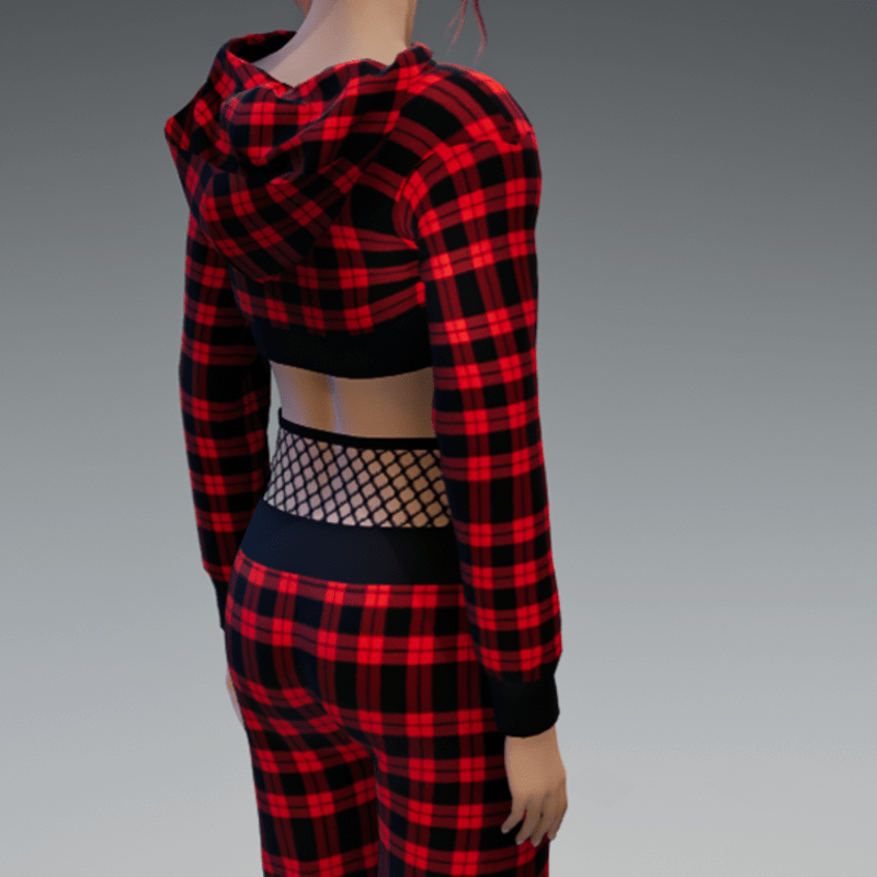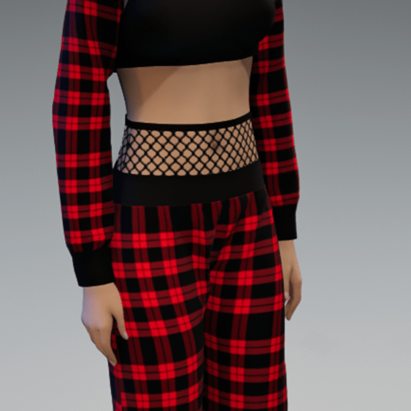 My comfy sweatpants with a checkered black and red fabric and a fishnet part on the top. If you want to get the full outfit showing in the images, check out my "Checkered Black & Red Hoodie with Black Top". Enjoy!
