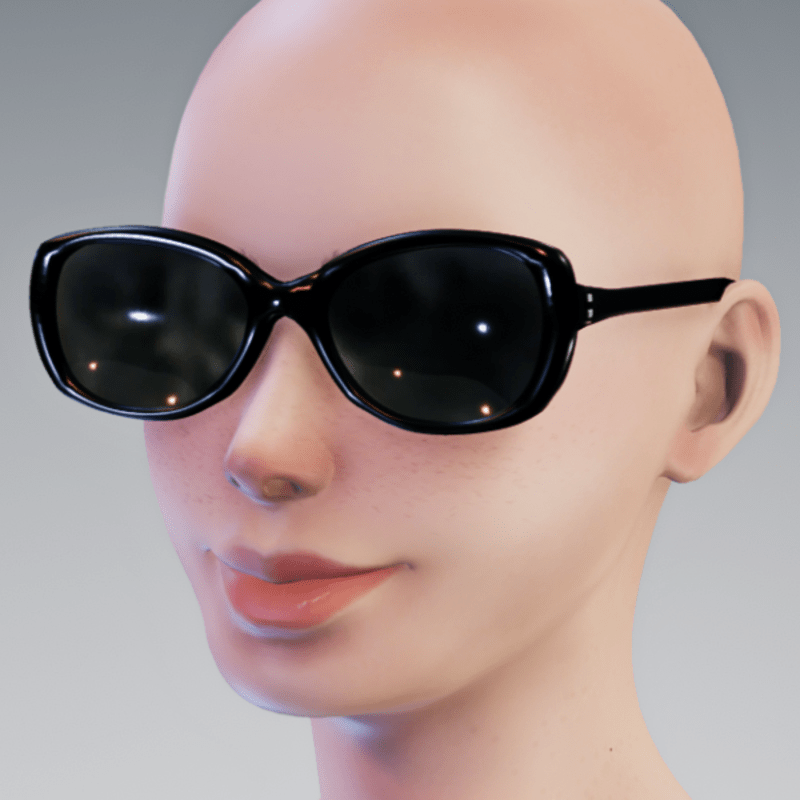 Sunni Glasses for AV2 avatars come in three glass versions -- dark, clear and no reflection. Make sure you get the glass you desire. Fits AV2 avatars. Some adjustments may be needed depending on the shape of your head. Use the TRANSFORM Gizmo for a perfect fit. Not all hairs of course will work with these glasses :D. These can be fitted for male avatars. See grayscale photo.