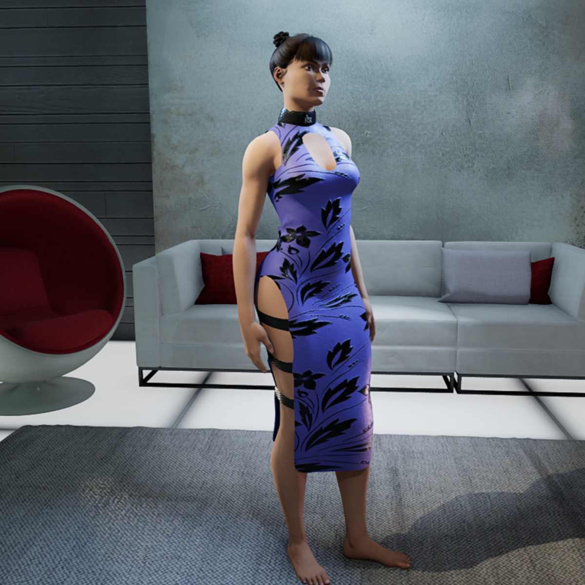 High quality gown with leather parts and shiny floral pattern. Please don´t forget the ratings ;) Please simulate the clothes before wearing it to adjust it optimally.