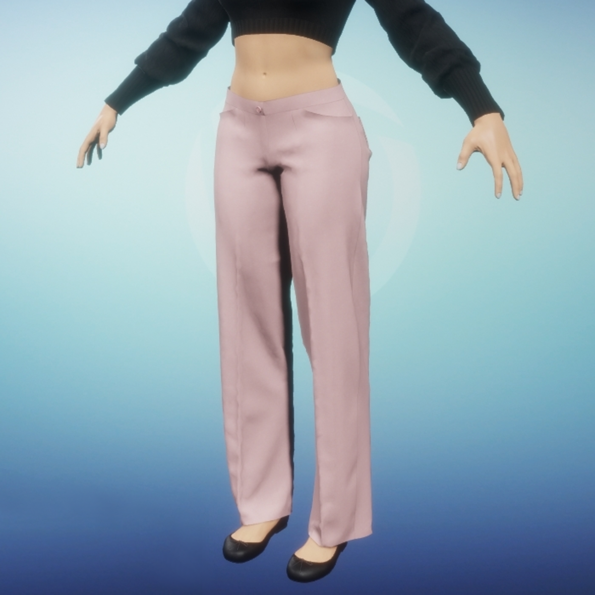 Women's dress slacks with front closure, welt pockets and back patch pockets. Front and back center legs have gently pressed folds for a dressy appearance. Be sure to animate cloth when wearing these slacks. Also, when layering, wear top layers first and then add lower layers. So if wanting to tuck in a shirt, where the shirt first then the slacks. If wanting to wear a top over the slacks wear the top first.